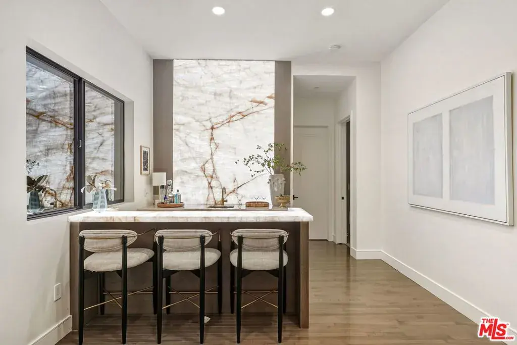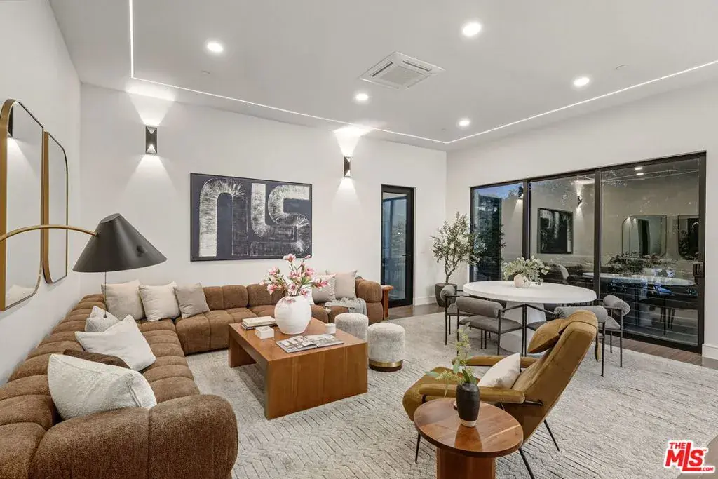 Discover the ultimate in contemporary Los Angeles luxury in this new construction home, completed in 2025 and situated in a prime Sunset Strip location favored by celebrities. This stunning residence seamlessly blends modern sophistication with unparalleled comfort, offering an exceptional lifestyle opportunity along with breathtaking city views. This brand new home, which has never been lived in, provides approximately 3,371 square feet of thoughtfully designed living space featuring 3 bedrooms and 3.5 bathrooms, characterized by luxury and innovation throughout. The entry level features a 3-car garage with epoxy floors and WiFi-enabled openers, along with a customizable spare room perfect for a home office, gym, or wellness area. Designed for seamless entertaining, the residence includes a private guest suite with a dedicated home theater and a sophisticated custom bar accented by stunning back-lit Cristalo stone. The heart of the home showcases breathtaking views and features a gourmet kitchen equipped with all-new Thermidor appliances, complemented by a dramatic custom back-lit Cristalo stone island and a convenient walk-in pantry with a built-in wine rack.Maple wood flooring and linear LED ceiling lights create a bright, airy ambiance, extending out to a sprawling patio with captivating Los Angeles skyline views. The private retreat levels offer a primary suite with unobstructed views of Downtown LA and a spa-like bath featuring a soaking tub, a walk-in shower with wall jets, a switchable privacy window, and a custom automatic toilet/bidet. An additional bedroom with a private bath and panoramic views, along with a well-placed laundry room, completes the upper-level sanctuary. The rooftop is designed for ultimate relaxation and entertaining, boasting a stunning patio and garden area anchored by a fully built-out in-ground heated spa. Throughout the residence, every detail has been elevated, including WiFi smart switches, recessed lighting, and back-lit mirrors in all restrooms. Outdoor luxury is extended with Bluetooth speakers at the balcony and Romeo/Juliet balconies on multiple levels. This prime location offers easy access to top restaurants and attractions in West Hollywood and Beverly Hills, making it the perfect turnkey retreat.