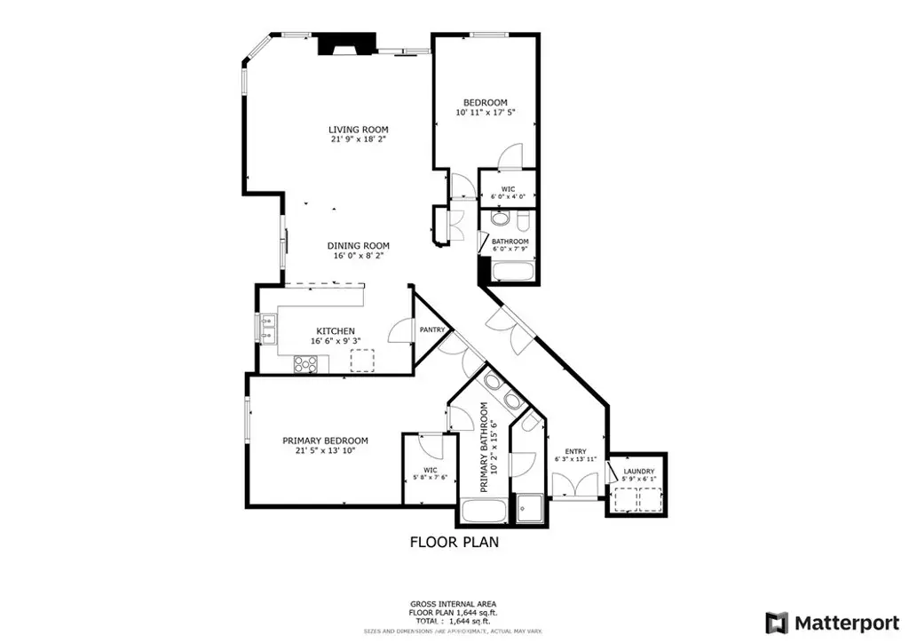 The well-designed floor plan includes two generously sized bedrooms and two full bathrooms, highlighted by a grand primary suite with dual vanities, a walk-in closet, and a spacious ensuite bath. A rare in-unit laundry room with abundant storage adds everyday convenience.