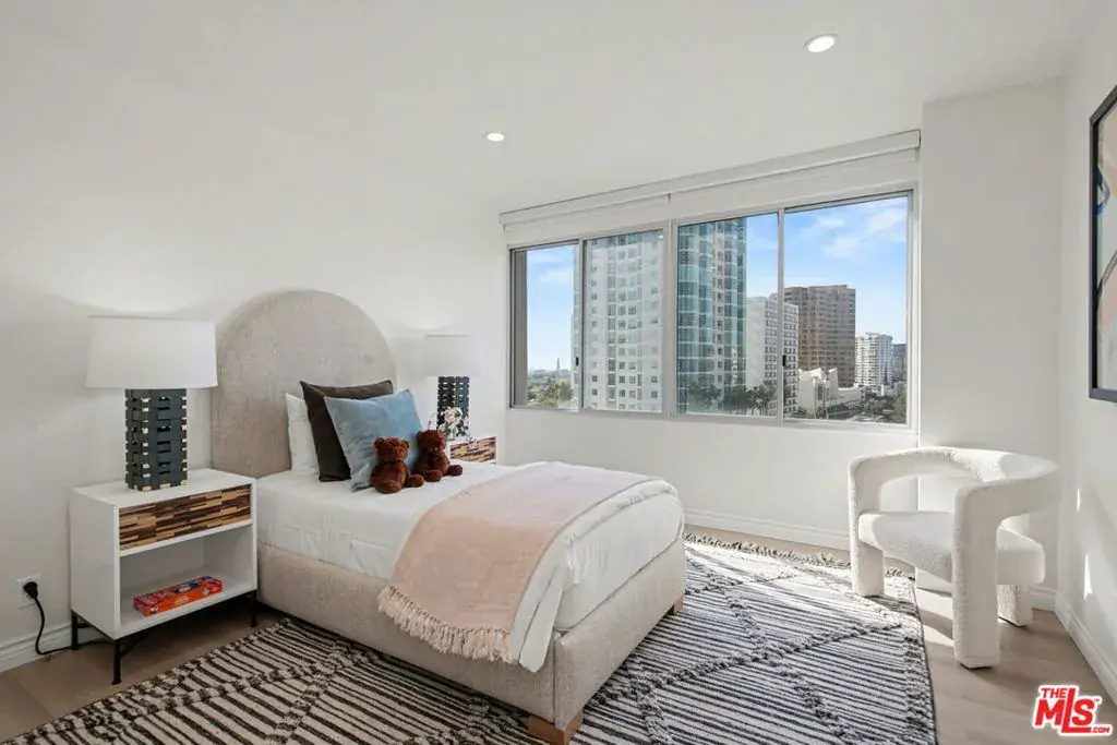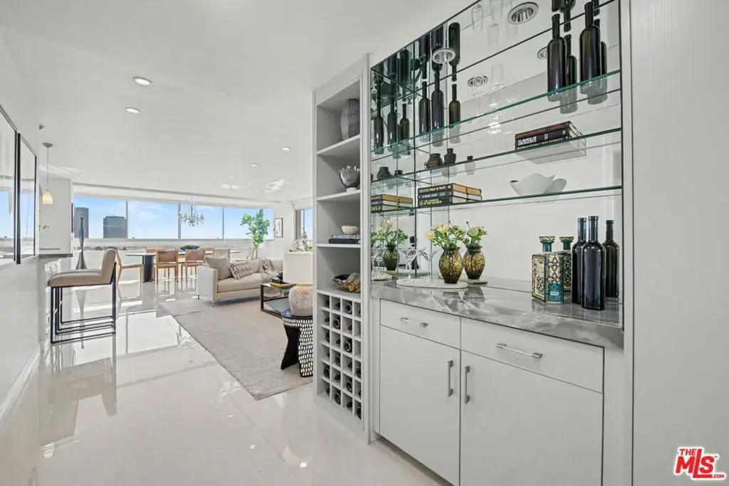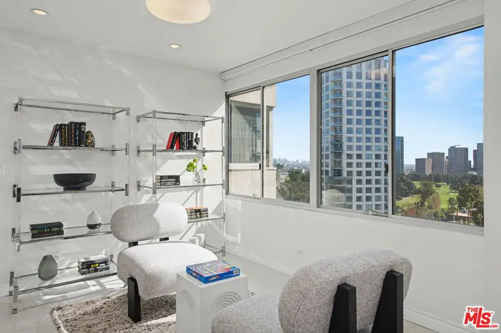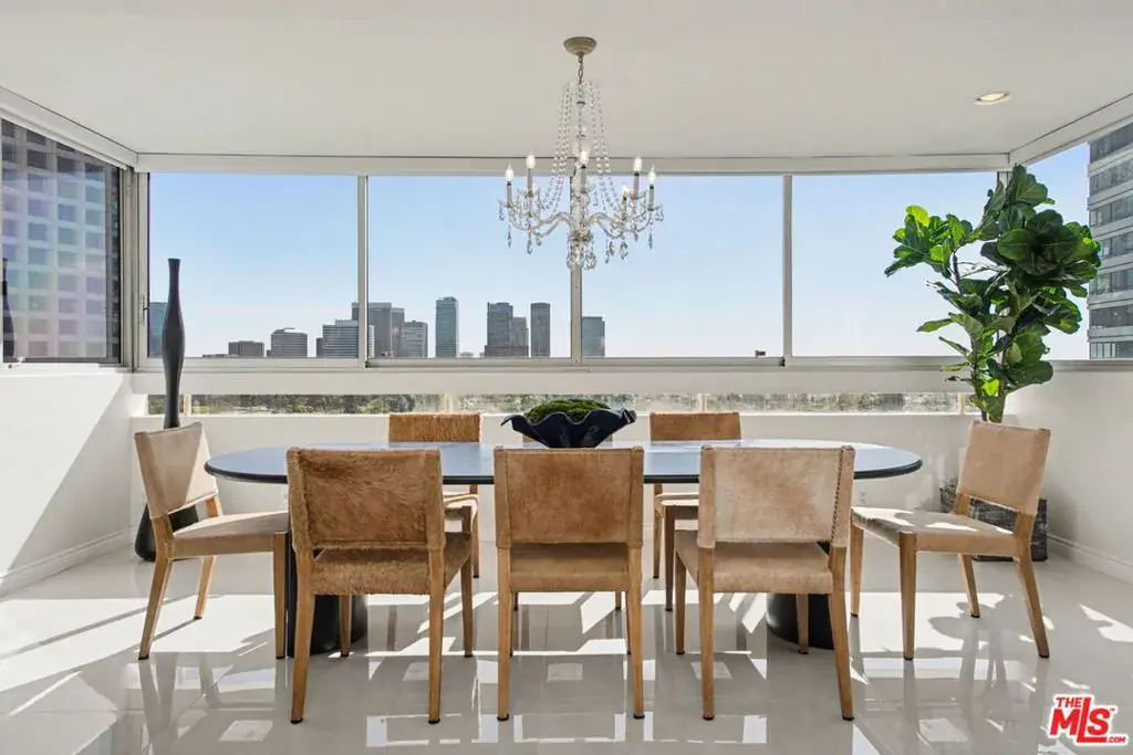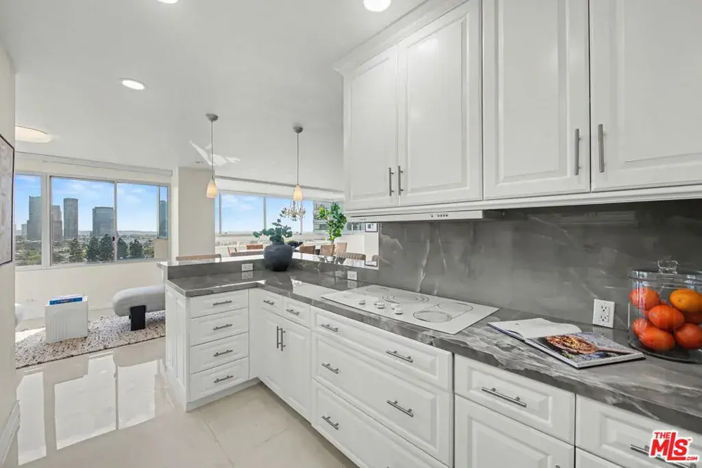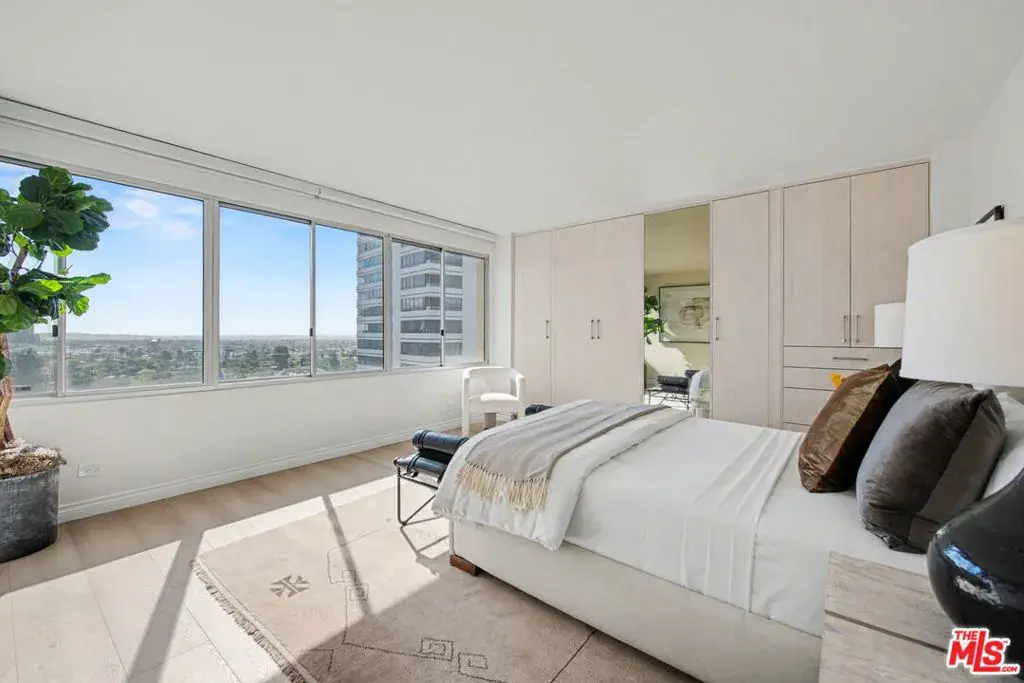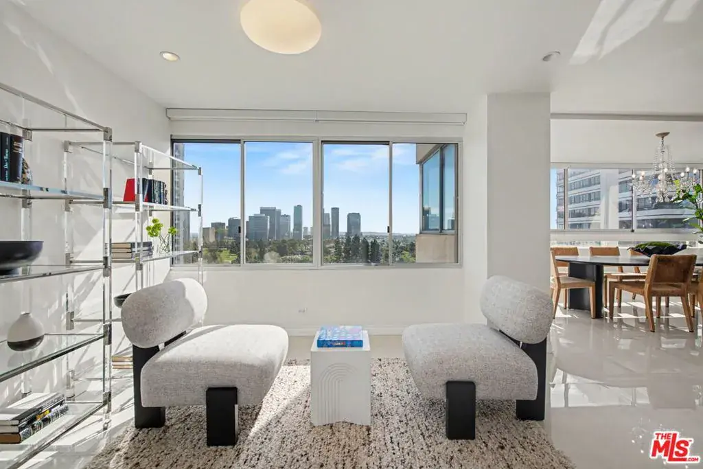 Newly remodeled Stunning Contemporary 5 bed/4.5 bath with unparalleled city, golf course and mountain views in the desired full service Comstock Towers on the Wilshire Corridor. Experience elevated living in this fully updated, sophisticated one level 3,100+sf condo. Showcasing breathtaking, unobstructed views of the Los Angeles Country Club golf course, Century City skyline, and surrounding mountains, this chic and spacious unit is designed for both grand entertaining and comfortable everyday living. A double-door entry opens to a light-filled, expansive floor plan featuring newer high-end designer finishes including marble and light oak hardwood flooring . The living room is framed by straight-on Century City views, enhanced by LED recessed lighting and custom auto shades. The open, fully remodeled kitchen includes stunning quartzite countertops, stainless steel appliances, a generous walk-in pantry, breakfast bar, and a separate breakfast room/flex space. A full laundry room with its own entrance and additional storage is conveniently located just off the kitchen.The dramatic dining room, surrounded by windows, captures stunning panoramic views, perfect for intimate dinners or large gatherings. Also includes a built-in entertainer’s bar counter with wine storage. The grand primary suite is a private retreat, ideally positioned at the back of the unit, opposite side of the other 4 bedrooms, with panoramic unobstructed mountain and golf course views. The suite features newly built custom closets and shelving. The spa-inspired primary bath is completely renovated with quartz countertops, new cabinetry, dual sinks, a vanity area, oversized spa tub, and a luxurious rain shower. With 3 of the 5 bedrooms having en-suite bathrooms, all with newly installed custom closets and newer hardwood flooring. In addition, a beautifully remodeled full hallway bath and stylish powder room complete the layout. Additional highlights include updated hardware throughout, abundant storage with multiple closets and built-in shelving, and storage cabinetry in the entry hall. Sophisticated, spacious, and thoughtfully designed, and ideal proximity to Beverly Hills, UCLA and Westfield Century City Mall. Warner Avenue Elementary. Move-in ready!