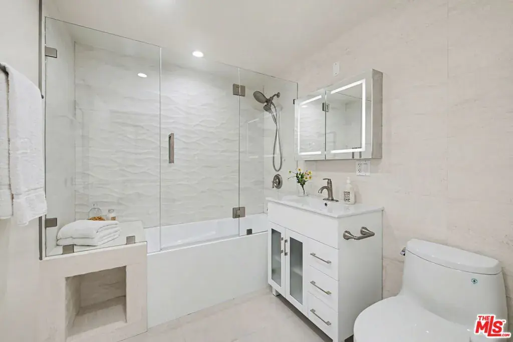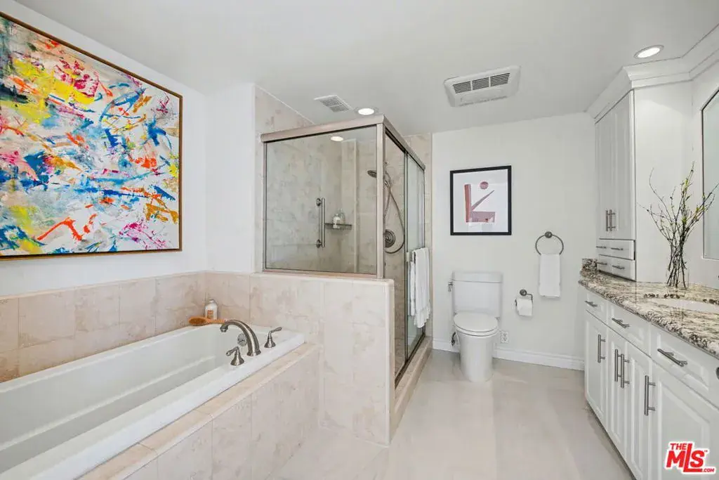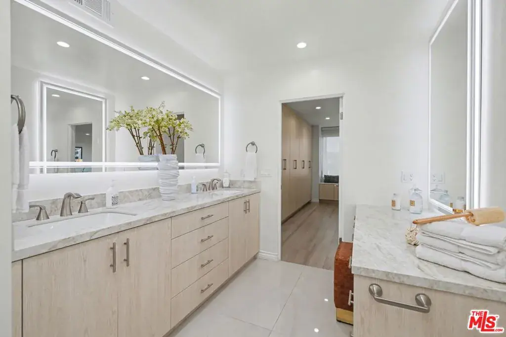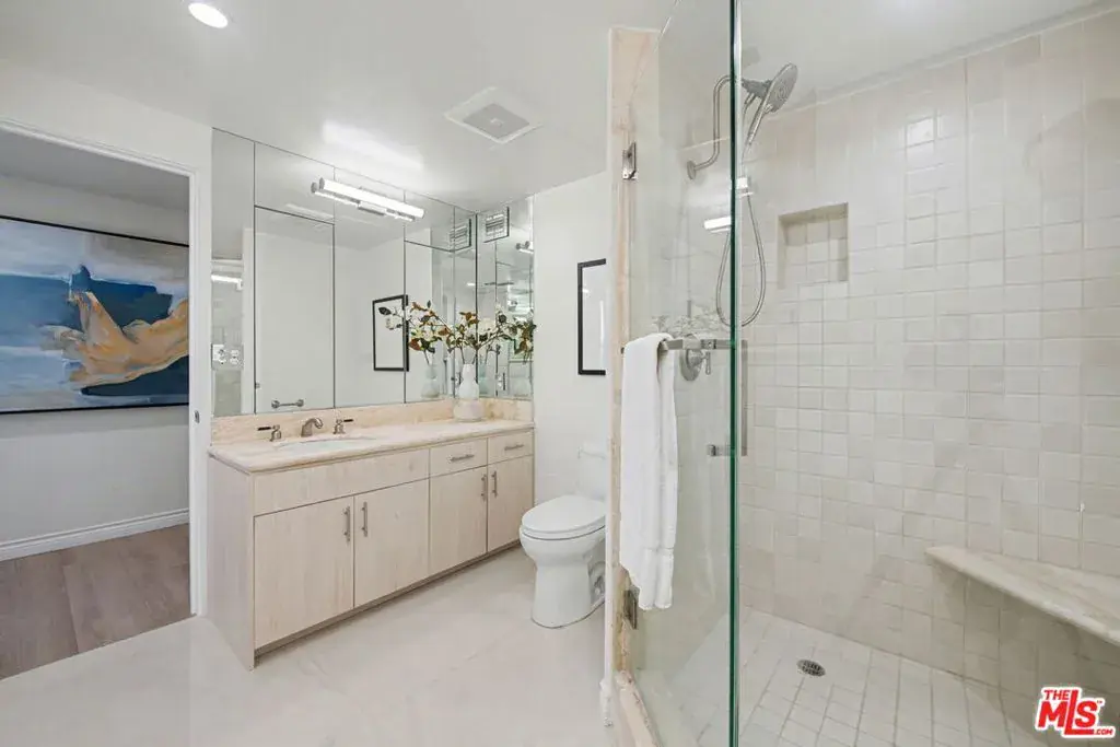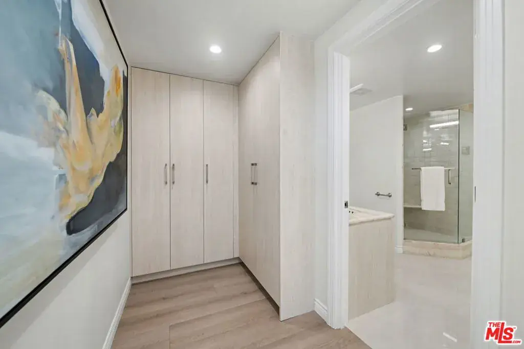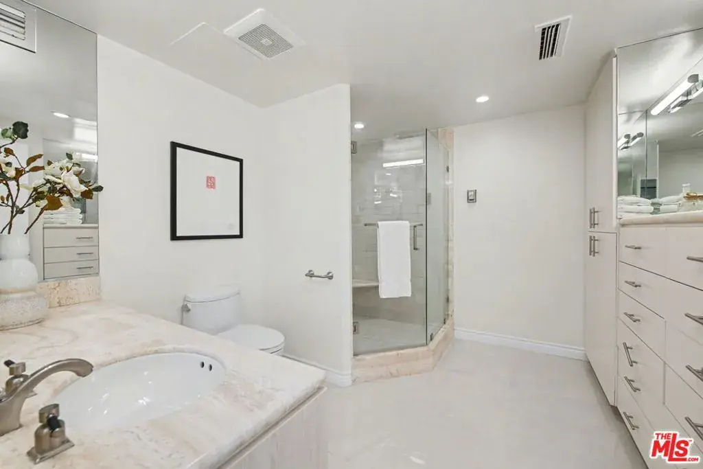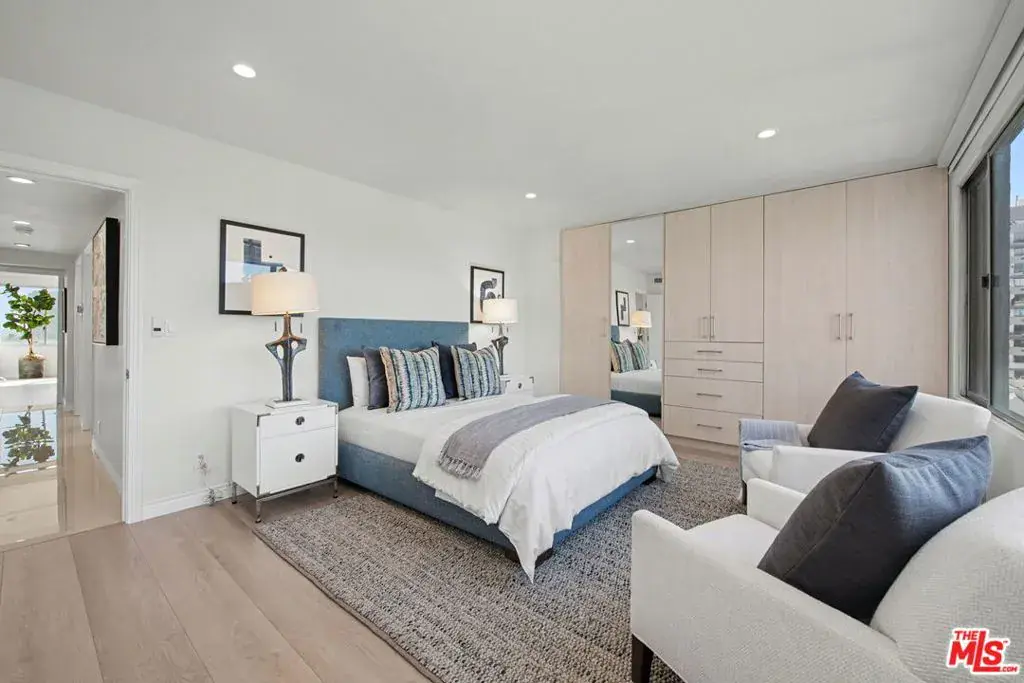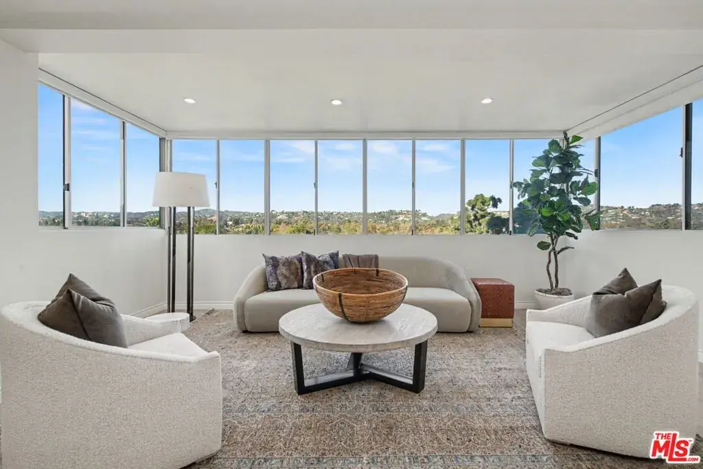 Newly remodeled Stunning Contemporary 5 bed/4.5 bath with unparalleled city, golf course and mountain views in the desired full service Comstock Towers on the Wilshire Corridor. Experience elevated living in this fully updated, sophisticated one level 3,100+sf condo. Showcasing breathtaking, unobstructed views of the Los Angeles Country Club golf course, Century City skyline, and surrounding mountains, this chic and spacious unit is designed for both grand entertaining and comfortable everyday living. A double-door entry opens to a light-filled, expansive floor plan featuring newer high-end designer finishes including marble and light oak hardwood flooring . The living room is framed by straight-on Century City views, enhanced by LED recessed lighting and custom auto shades. The open, fully remodeled kitchen includes stunning quartzite countertops, stainless steel appliances, a generous walk-in pantry, breakfast bar, and a separate breakfast room/flex space. A full laundry room with its own entrance and additional storage is conveniently located just off the kitchen.The dramatic dining room, surrounded by windows, captures stunning panoramic views, perfect for intimate dinners or large gatherings. Also includes a built-in entertainer’s bar counter with wine storage. The grand primary suite is a private retreat, ideally positioned at the back of the unit, opposite side of the other 4 bedrooms, with panoramic unobstructed mountain and golf course views. The suite features newly built custom closets and shelving. The spa-inspired primary bath is completely renovated with quartz countertops, new cabinetry, dual sinks, a vanity area, oversized spa tub, and a luxurious rain shower. With 3 of the 5 bedrooms having en-suite bathrooms, all with newly installed custom closets and newer hardwood flooring. In addition, a beautifully remodeled full hallway bath and stylish powder room complete the layout. Additional highlights include updated hardware throughout, abundant storage with multiple closets and built-in shelving, and storage cabinetry in the entry hall. Sophisticated, spacious, and thoughtfully designed, and ideal proximity to Beverly Hills, UCLA and Westfield Century City Mall. Warner Avenue Elementary. Move-in ready!