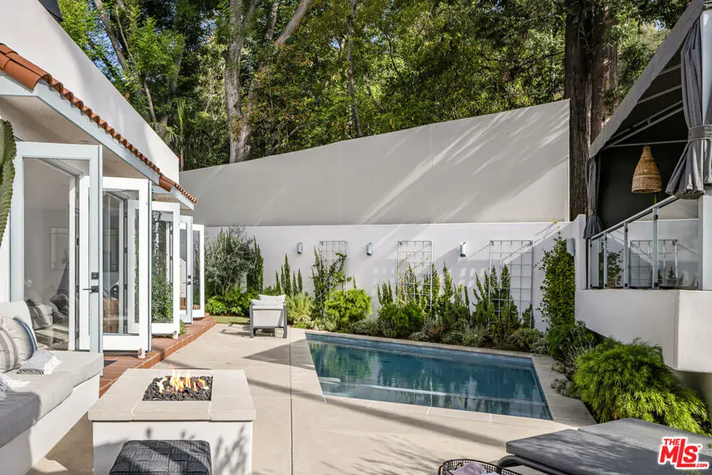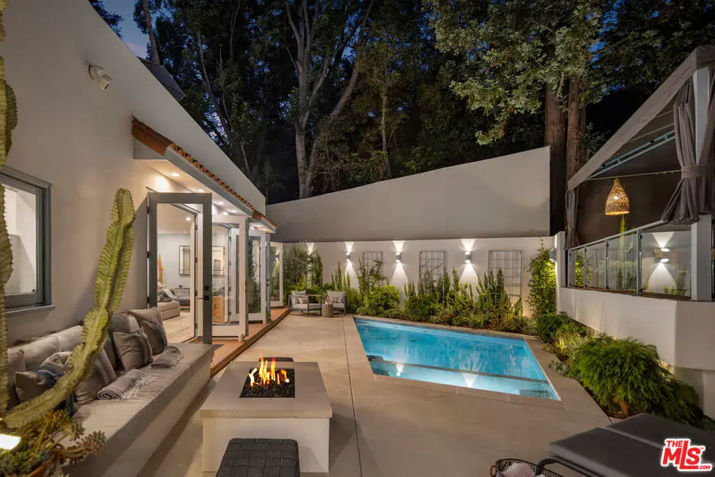 Nestled in the vibrant heart of Laurel Canyon, just minutes from the legendary Sunset Strip, this newly renovated ~3300sqft Spanish contemporary smart home embodies the essence of Hollywood Hills living. Located in the coveted Wonderland School District and eligible for Mulholland Tennis Club membership, this residence blends modern luxury with true bohemian spirit. The four bedroom and four bathroom main house features a spacious open-concept living and dining area, bathed in natural light, flowing seamlessly to an indoor-outdoor backyard oasis. Entertain effortlessly with a fire pit, pool & spa, and a rooftop BBQ & cabana lounge. The chef’s kitchen boasts top-tier appliances, two luxurious primary suites offer spa-inspired ensuite bathrooms with steam showers, while a generous guest bedroom (with ensuite) and additional full bathroom on the main floor provide ample space for family or visitors. The detached two-car garage and extra private parking for two more vehicles, four spots in total, add convenience and functionality. The upstairs primary suite opens to a sun-soaked rooftop deck with treetop canyon views, perfect for sunset sound baths, morning yoga, or al fresco dining. The backyard boasts a separate ~600 sq. ft. guest house, complete with its own entrance, bedroom, bathroom, kitchen, and private outdoor space. Live the California dream in the canyon, where timeless charm meets contemporary elegance.