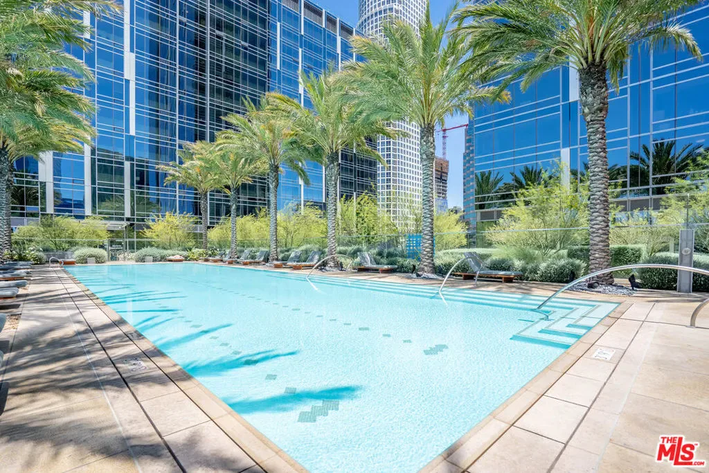 NEWER LUXURY CONDO, RARE UNIT WITH BALCONY – It’s one of the very few units at this building with a balcony and with these views, it’s definitely a special one. Ideally facing west to capture stunning sunset views and a gorgeous cityscape, Residence 1116 at the popular Metropolis II Towers offers an exceptional living experience. As one of the most magnificent high-rise condominium buildings in Los Angeles, this residence welcomes you with guarded security and an impressive lobby featuring soaring ceilings, attentive concierge service, and sophisticated finishes that set the tone for this urban oasis. Upon entering Residence 1116, you’re immediately greeted by breathtaking west-facing views that flood the space with natural light. A convenient coat closet and powder room lead you into a beautifully designed open-concept kitchen, dining, and living area, perfect for today’s most discerning buyer who values seamless entertaining and modern living. Step onto your private terrace off the living room and immerse yourself in panoramic city views while savoring your morning coffee or evening wine. This is your personal retreat above it all. The generously sized bedroom features two thoughtfully designed closets: a walk-in and an organized shoe closet with shelving. The luxurious ensuite bathroom showcases elegant stonework surrounding the tub and a sleek floating vanity, creating a spa-like atmosphere. At just under 1,000 square feet, this condominium delivers the perfect balance of luxury and livability. To add, there is great closet space in this particular plan and that is an important item for many. There is a double door coat closet in the entry, there’s a storage closet in the living room, two closets in the bedroom, and there’s another storage closet in the powder room. The building’s exceptional amenities elevate your lifestyle with a sophisticated club room, billiard room, business center, fitness facility, resident lounge, and locker rooms complete with steam room. The outdoor amenities are truly spectacular: a stunning glass-walled outdoor kitchen, resort-style pool, hot tub positioned to capture those mesmerizing west-facing city views, dog park, children’s playground, beautifully landscaped park areas, and inviting sitting spaces throughout. This is truly a place you’ll be proud to call home. The location is unbeatable as you’ll be surrounded by incredible dining destinations including the new Javier’s and Mastro’s, with convenient access to Whole Foods and the highly anticipated Erewhon Market opening in 2027. Cultural attractions like the renowned MOCA, The Broad, and Walt Disney Concert Hall are just moments away. Make your appointment today. This exceptional residence won’t last long.