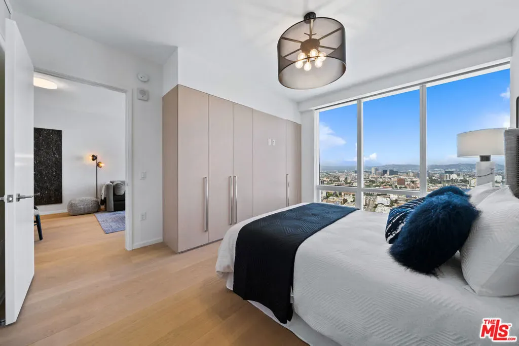 Sweeping views of the San Gabriel Mountains and the Hollywood Sign create a dramatic focal point, transforming every sunset into an experience. As dusk falls, the skyline glitters below. A generous open concept 1BR/1.5BA with a grand living area and spectacular views. The residence features integrated Miele appliances, Caesarstone countertops, custom Italian cabinetry with LED lighting and a Nest Learning Thermostat. Bath includes a custom vanity with Hansgrohe and Duravit fixtures. The home is appointed with integrated appliances, custom cabinetry, in-home laundry, and spacious built-in closets. Refined details including French oak flooring, integrated shades, and a Nest Learning Thermostat complete this elevated urban retreat. Metropolis spans an entire city block in vibrant South Park and offers 40,000+ SF of resort-style amenities, including the Met Nine clubhouse, junior Olympic-sized pool and spa, Skypark with fire pit, fitness center with TechnoGym equipment and yoga studios, screening room, business center, dog park, and 24/7 lobby ambassador service. Located moments from Crypto.com Arena, L.A. LIVE, USC, and Dodger Stadium.One-bedroom incentives up to $30,000 available. Portfolio financing available.