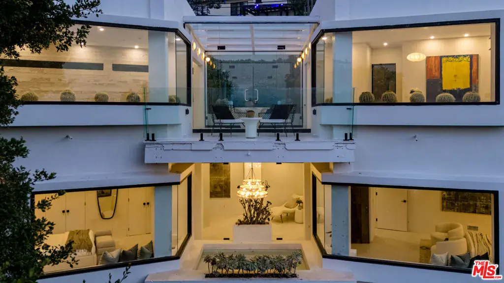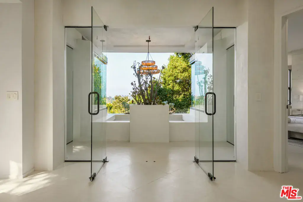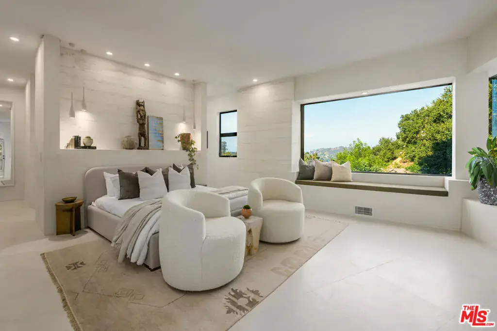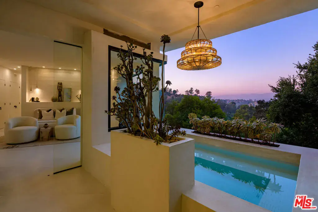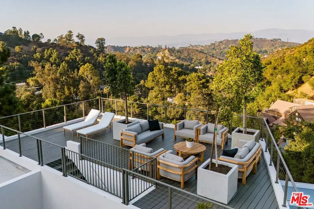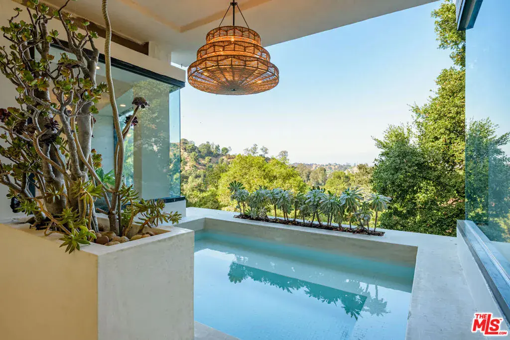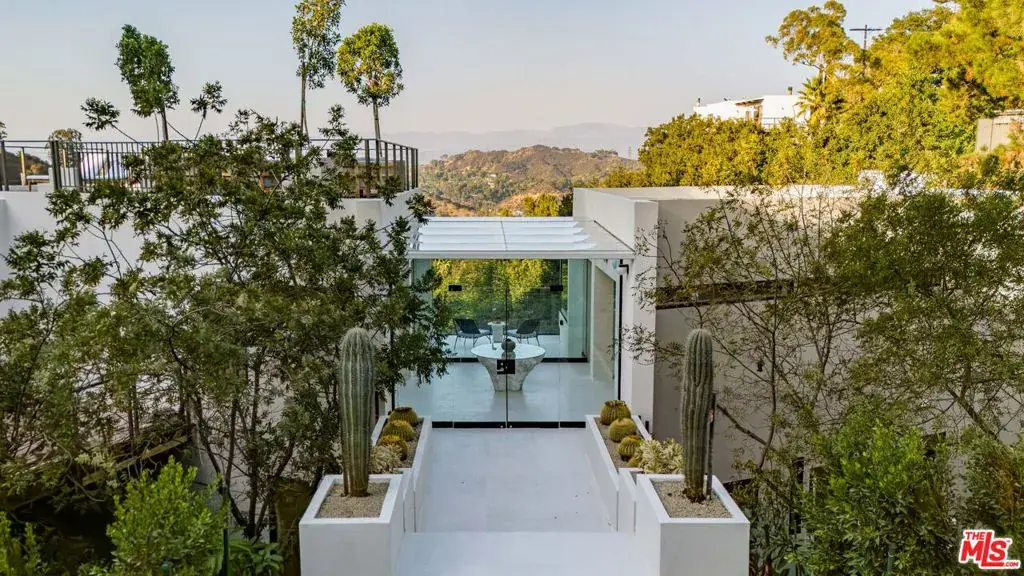 8896 Lookout Mountain Hollywood Hills. A private architectural retreat with unobstructed views of legendary Laurel Canyon. This modern residence combines striking geometric design with natural light, sculpting a home of elegance, privacy, and serenity. The open living space features white porcelain floors, smooth concrete walls, and a statement fireplace, flowing into a chef’s kitchen with dark oak cabinetry, porcelain countertops, and top-tier appliances. Two primary suites include spa-inspired bathrooms with Japanese soaking tubs and a shared balcony with an infinity-edge Jacuzzi overlooking the canyon. A third bedroom opens to the deck and landscaped garden. Outdoor living is elevated with expansive decks, a rooftop lounge with panoramic views, and the potential for a leveled garden with secondary street access. Nestled in a coveted enclave of the Hollywood Hills and near acclaimed Wonderland Avenue Elementary, this home offers unmatched privacy and a lifestyle defined by design, views, and exclusivity.
