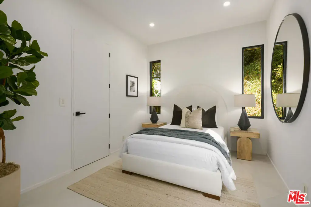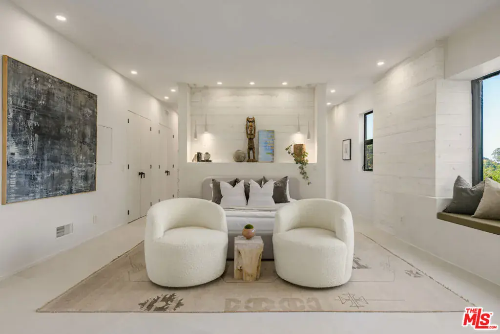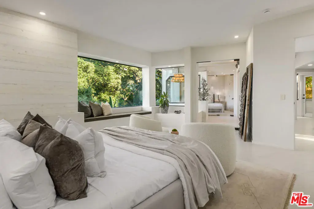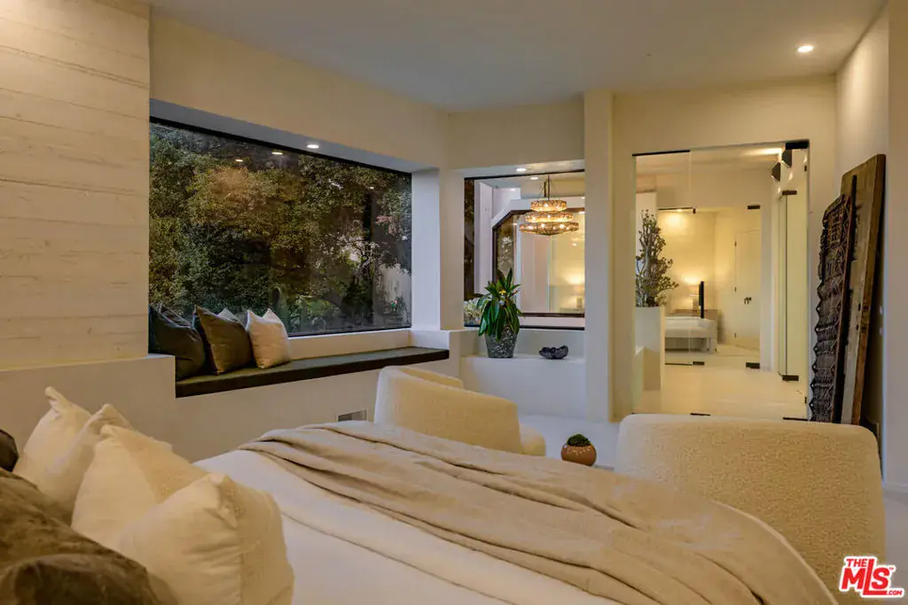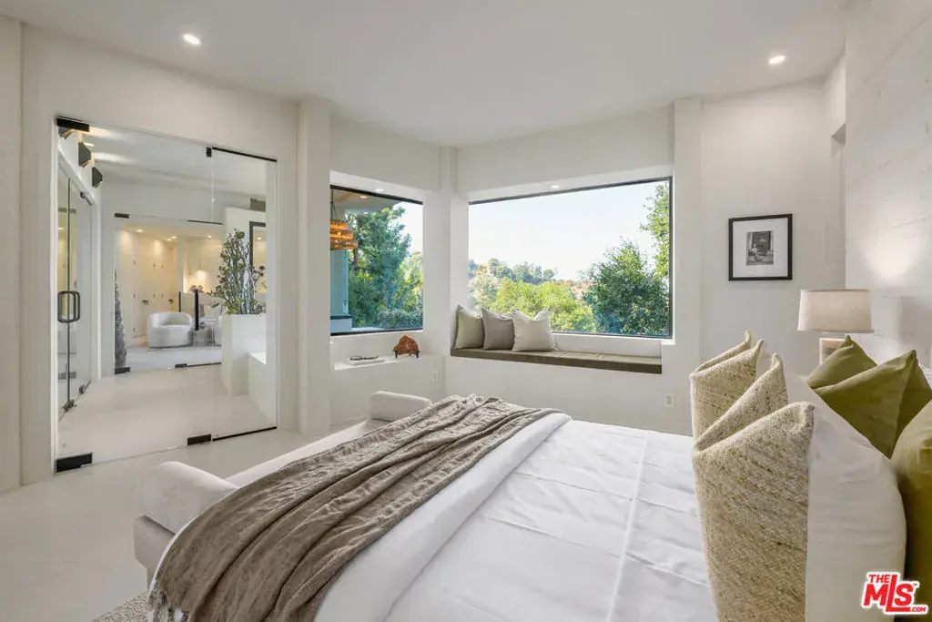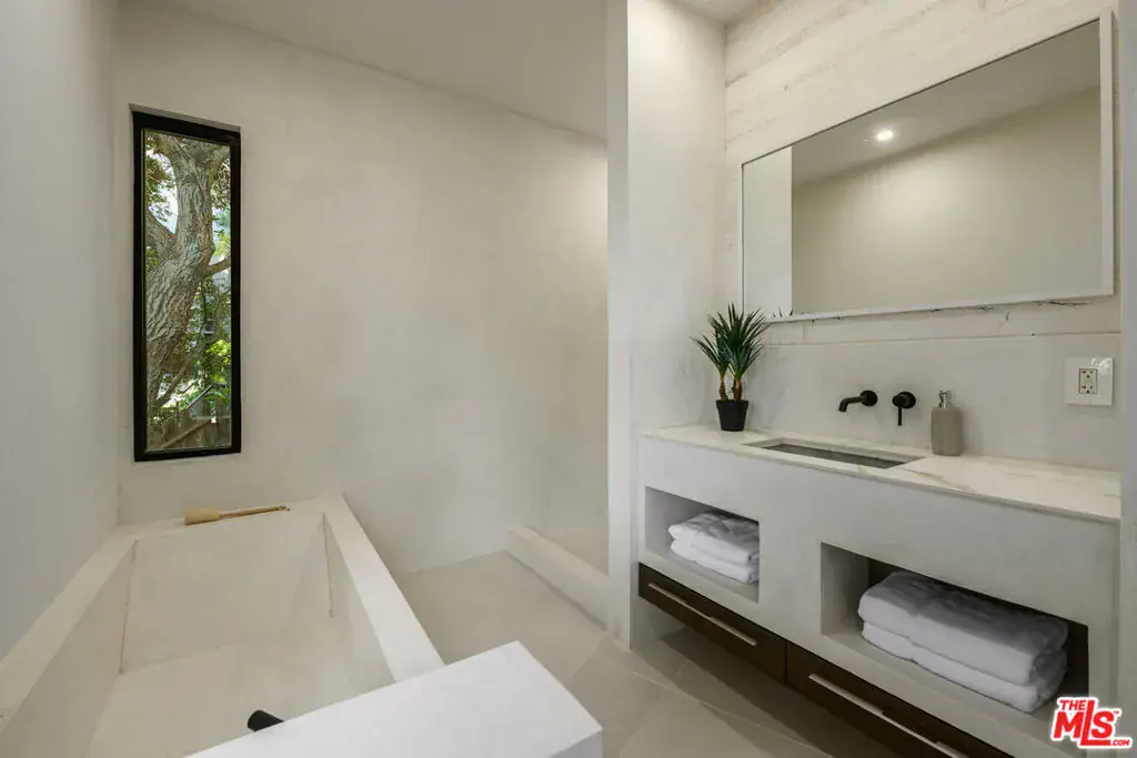 8896 Lookout Mountain Hollywood Hills. A private architectural retreat with unobstructed views of legendary Laurel Canyon. This modern residence combines striking geometric design with natural light, sculpting a home of elegance, privacy, and serenity. The open living space features white porcelain floors, smooth concrete walls, and a statement fireplace, flowing into a chef’s kitchen with dark oak cabinetry, porcelain countertops, and top-tier appliances. Two primary suites include spa-inspired bathrooms with Japanese soaking tubs and a shared balcony with an infinity-edge Jacuzzi overlooking the canyon. A third bedroom opens to the deck and landscaped garden. Outdoor living is elevated with expansive decks, a rooftop lounge with panoramic views, and the potential for a leveled garden with secondary street access. Nestled in a coveted enclave of the Hollywood Hills and near acclaimed Wonderland Avenue Elementary, this home offers unmatched privacy and a lifestyle defined by design, views, and exclusivity.