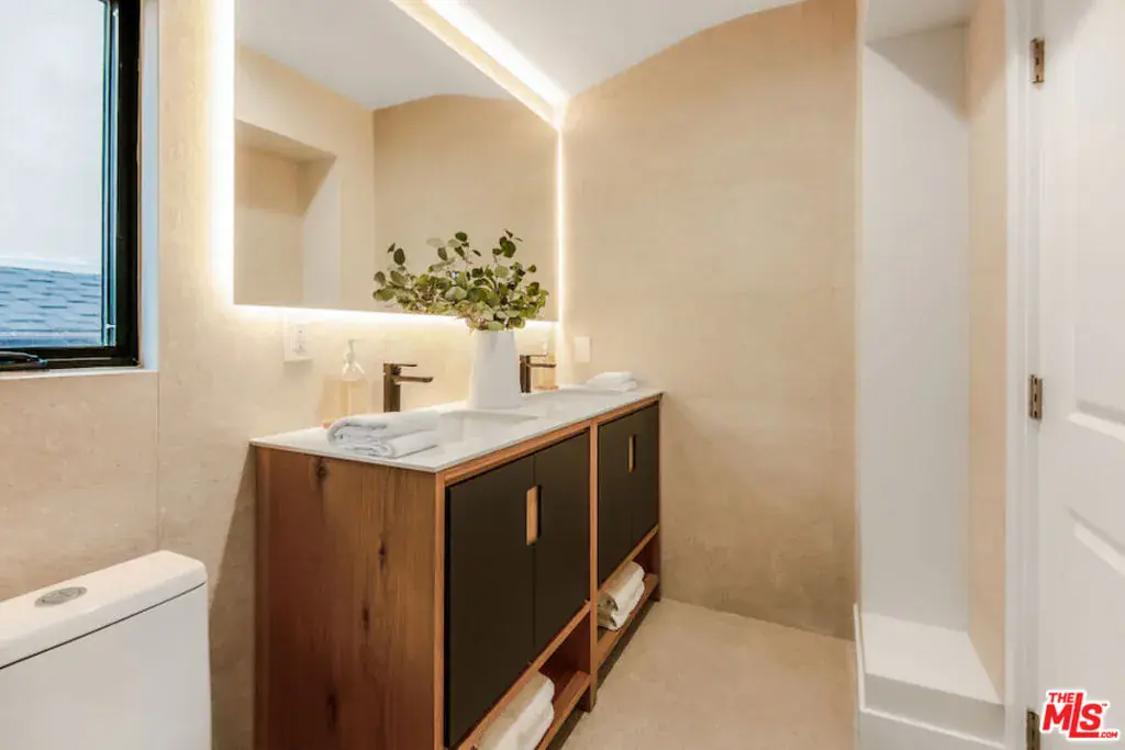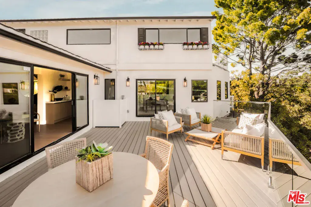 Showcasing captivating city views from its hillside perch, this newly reimagined modern residence in the iconic Hollywood Hills embodies the essence of contemporary California living. Spanning approximately 2,740 sq. ft., the home features wide-plank select-grade hardwood floors, light-filled open spaces, and a seamless indoor-outdoor flow designed to embrace the surrounding vistas. The chef’s kitchen impresses with custom real-wood cabinetry, brand-new Miele appliances, and Calacatta Gold marble countertops. The primary suite offers a spa-inspired bath, custom walk-in closet, and private balcony overlooking the glittering city below. Additional bedrooms provide flexibility for guests, family, or a home office, including a guest suite/studio with a private entrance. Multiple terraces and a canyon-view deck create the perfect setting for relaxation and entertaining. Ideally located within the coveted Wonderland School District, with easy access to Laurel Canyon, Sunset Blvd, and Mulholland Drive.