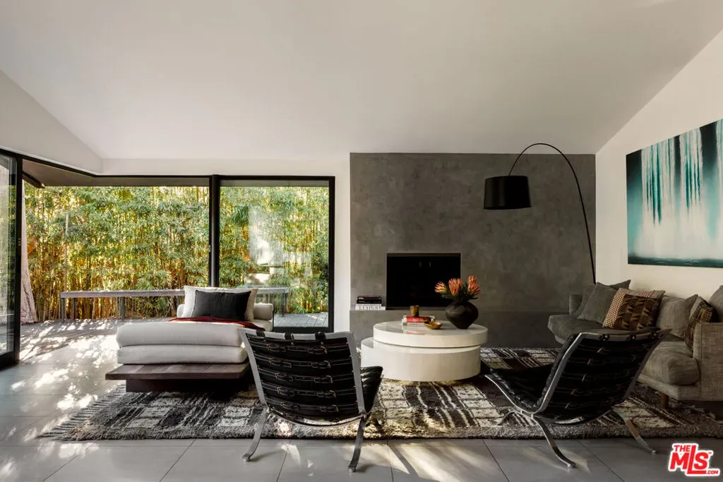 Available for long-term lease, furnished or unfurnished. Experience elevated living in this masterfully reimagined Mid-Century modern residence, ideally located within the acclaimed Wonderland Avenue Elementary School district and near the Mulholland Tennis Club, in Laurel Canyon’s exclusive Wonderland Park enclave. This fully furnished architectural masterpiece seamlessly blends historic charm with contemporary luxury, offering an unparalleled rental opportunity in one of Los Angeles’ most coveted neighborhoods. The thoughtfully designed floor plan showcases a dramatic thirty-foot skylight that floods the interior with natural light, while floor-to-ceiling sliding glass doors create a seamless connection to private outdoor spaces. The five-bedroom residence features a luxurious primary suite with sweeping canyon views, perfect for those seeking a sophisticated work-from-home lifestyle with its treehouse-inspired office. The gourmet kitchen serves as the home’s centerpiece, appointed with custom white oak cabinetry and dual Caesarstone waterfall islands ideal for entertaining. Additional amenities include a dedicated screening room, whole-home Control 4 system with built-in speakers, and a sparkling heated pool surrounded by mature landscaping. This turn-key offering comes completely furnished with designer selections and sustainably minded features including solar power. Nestled among architectural landmarks including Pierre Koenig’s Case Study House #21, this exceptional property offers distinguished residents the opportunity to experience the pinnacle of Los Angeles luxury living in a historically significant setting.