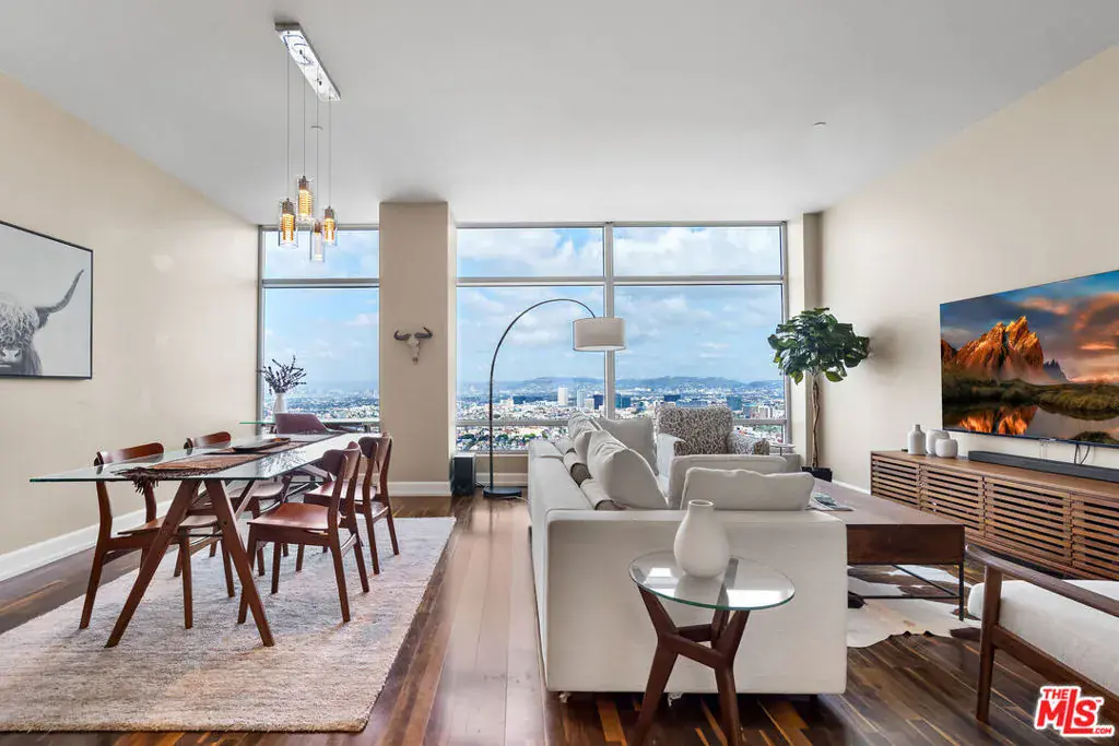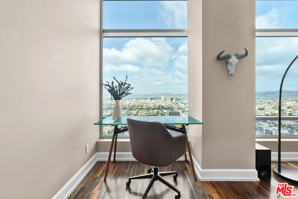 Perched on the 40th floor of the prestigious Ritz-Carlton Residences, this exquisite condominium offers an unparalleled blend of sophistication, service, and stunning panoramic views. From the moment you step inside, you’re captivated by breathtaking vistas that stretch from the majestic mountain ranges to the shimmering Pacific Ocean, all framed by the city’s dynamic skyline. The open-concept kitchen is a chef’s dream, featuring an ample sized island, sleek Snaidero Italian cabinetry and top-of-the-line Gaggenau appliances. The living area is equally impressive, boasting Danish hardwood floors, near floor-to-ceiling windows, and soaring 10-foot ceilings that showcase iconic sights such as the Hollywood Sign and Griffith Observatory. Both bedrooms are spacious retreats, each with a luxurious ensuite bathroom. The primary suite offers a spa-like oasis, complete with a soaking tub, floor-to-ceiling tile, and a unique window into the bedroom to maximize natural light and enhance the views. Storage is abundant, with a walk-in closet in the primary suite and a double-door closet in the entryway area. Additional highlights include motorized window shades, custom light fixtures, a powder room with laundry, and a versatile den perfect for a home office or cozy lounge space. Beyond your private sanctuary, indulge in the legendary white-glove service of The Ritz-Carlton. Enjoy in-residence dining, housekeeping services, and exclusive owner perks, such as VIP event access and hotel discounts worldwide. Take the elevator down to the Ritz-Carlton Spa for a rejuvenating massage or steam session, or explore the renowned on-site dining and entertainment offerings just steps away. Whether it’s courtside seats at a Lakers game, a Kings hockey match, or a headlining concert, the city’s best experiences are at your doorstep. This coveted residence includes two valet parking spaces and a storage unit. Experience the perfect blend of luxury, convenience, and world-class services. Schedule your private tour today.