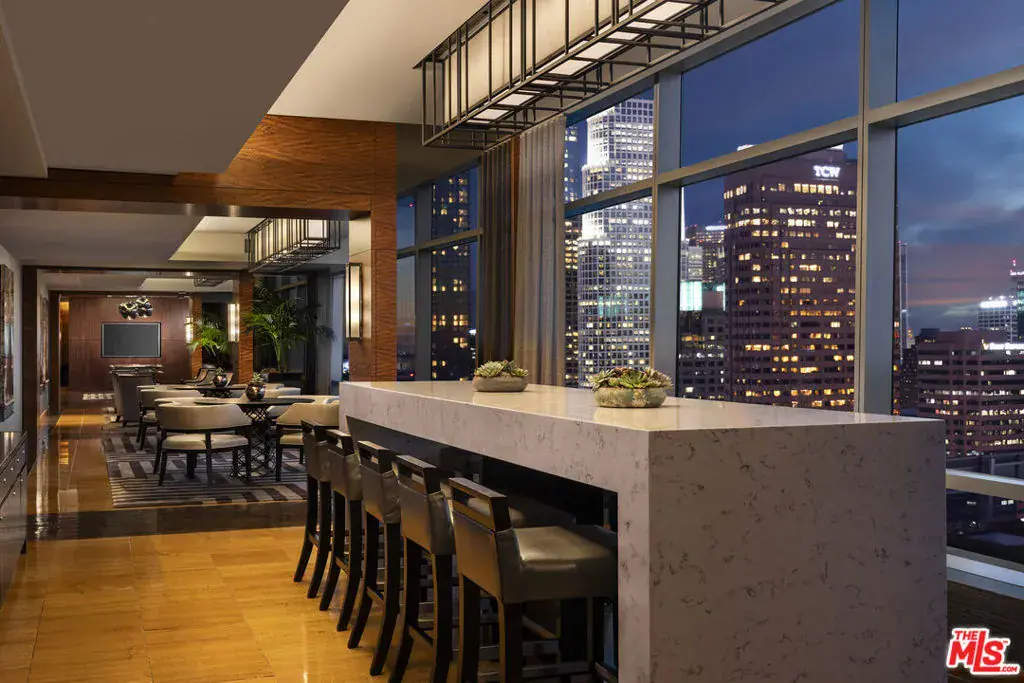 Experience five-star luxury living at The Ritz-Carlton Residences at LA Live. This stunning 47th floor unit is one of the largest square footages in the building and offers breathtaking 270-degree views. Walls of glass look out to the Hollywood Hills, Pacific Ocean and a breathtaking perspective of the downtown Los Angeles skyline. The formal entrance hall opens to the massive living & dining room with landmarks in every direction; The Hollywood Sign, Observatory and so much more…The Chef’s kitchen adjoins the separate and expansive media room with two walls of glass. From there, an art filled gallery takes you to the Primary Suite with sitting area and views to the ocean. The spa-like bath offers double showers, rich stone surfaces and a large soaking tub. All this is completed by two large walk-in closets. Two additional suites with their own luxurious baths are at opposite sides of this spacious unit. White Glove Service includes The Ritz Rooftop Saltwater Pool & Bar, cabanas, valet parking, security, concierge, glass-top billiards, conference room, screening room & access to the hotel’s room service. Situated in the heart of DTLA’s vibrant South Park district, this premier location is just steps from Crypto.com Arena, LA Live, fine dining, entertainment, movie theatres and shopping. Enjoy an easy stroll to Lakers, Clippers and Kings games. A wonderful lifestyle of security, excitement and convenience. Includes a private storage unit.