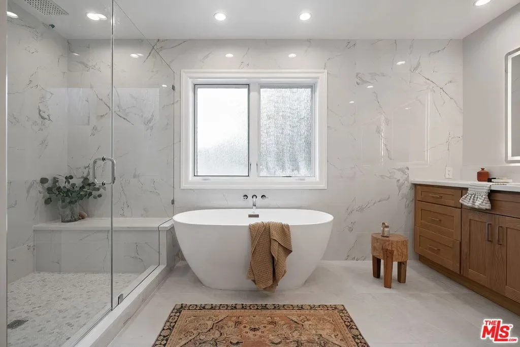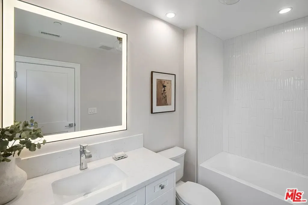 BRAND NEW 2026 GROUND-UP CONSTRUCTION Sunny and Warm FARM style 2 story home with 5 beds, 5.5 baths plus a fully permitted ADU guest house with another bedroom and bathroom in the prestigious Beverlywood HOA. Large windows and floor to ceiling door systems, recessed lights throughout, park-like grassy landscaped backyard + grassy front yard. Attached 2 car garage with electric chargers, automatic garage door outside and direct entry to the house inside. Covered front porch makes for a welcoming entry. Amazing floor plan perfect for entertaining and living! The living room opens to the dining room, which opens to the kitchen, which is off the family room with sliding door system to the backyard. Spacious kitchen with center oak island, double sinks, Wolf induction range, Wolf double wall oven, Subzero fridge/freezer, 2 Bosch dishwashers, pot filler, and cabinetry that maximizes storage. Huge family room off the kitchen with sliding glass doors to the lush green backyard! Bluestone clad back patio off the family room with pergola overhead overlooks the park-like yard. Oversized coat closet/mudroom + powder room downstairs. The full bedroom suite downstairs is currently staged as an office. Stairs with iron railing + oak handrail leads to a generous landing that circles the second floor. Upstairs has 4 generously sized bedrooms, 3 bathrooms, and a laundry room. The primary bedroom is a suite with a large walk in closet and views of the hills, primary bathroom with double vanity + freestanding tub + shower with rain shower head + separate toilet room. Three additional sunshine filled bedrooms adorn the second floor each with skyline and/or treetop views and large built out walk-in closets. Sawn and finished solid oak hardwood floors, control 4 system, alarm system and hardwired for WIFI. Andersen windows with screens throughout, dual zone HVAC with double 5 ton units + long linear vents throughout, solar panels purchased outright, fire sprinklers. Lush landscaped park-like backyard with room for a pool! Move-Right-In and have everything pristine, immaculate, and sparkling brand-new!!!