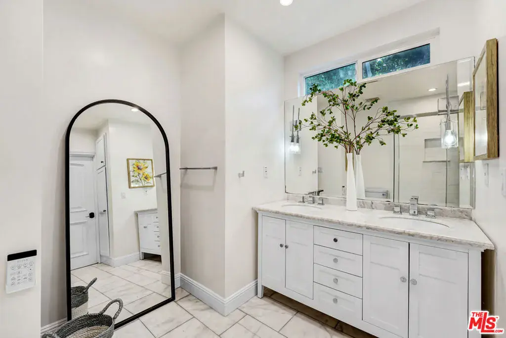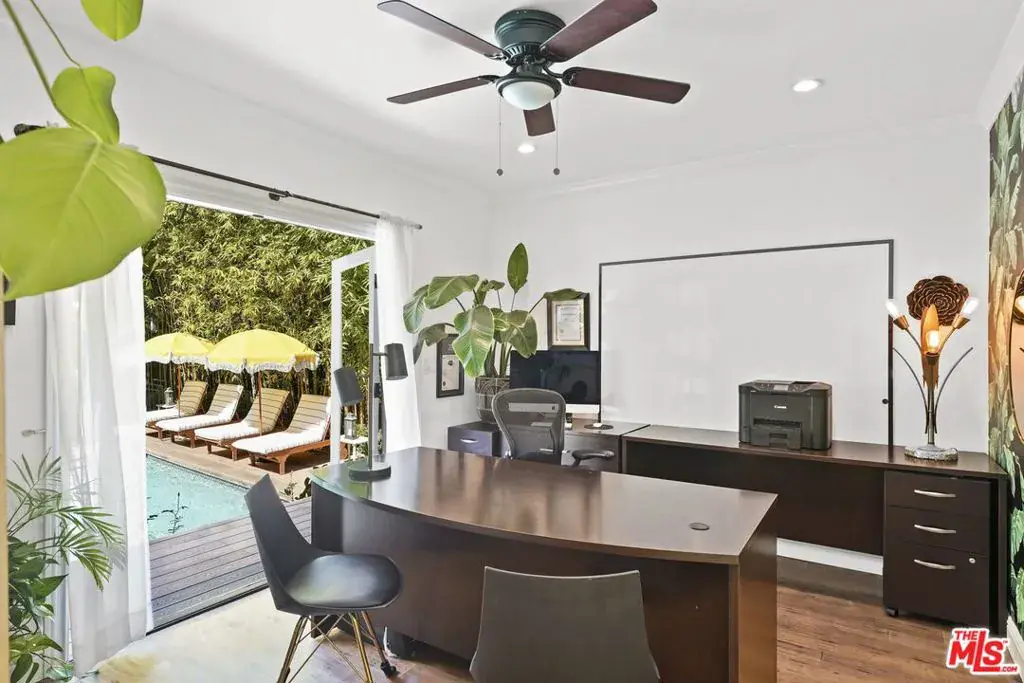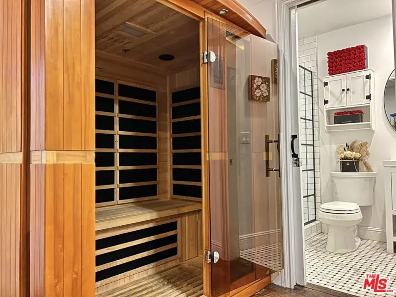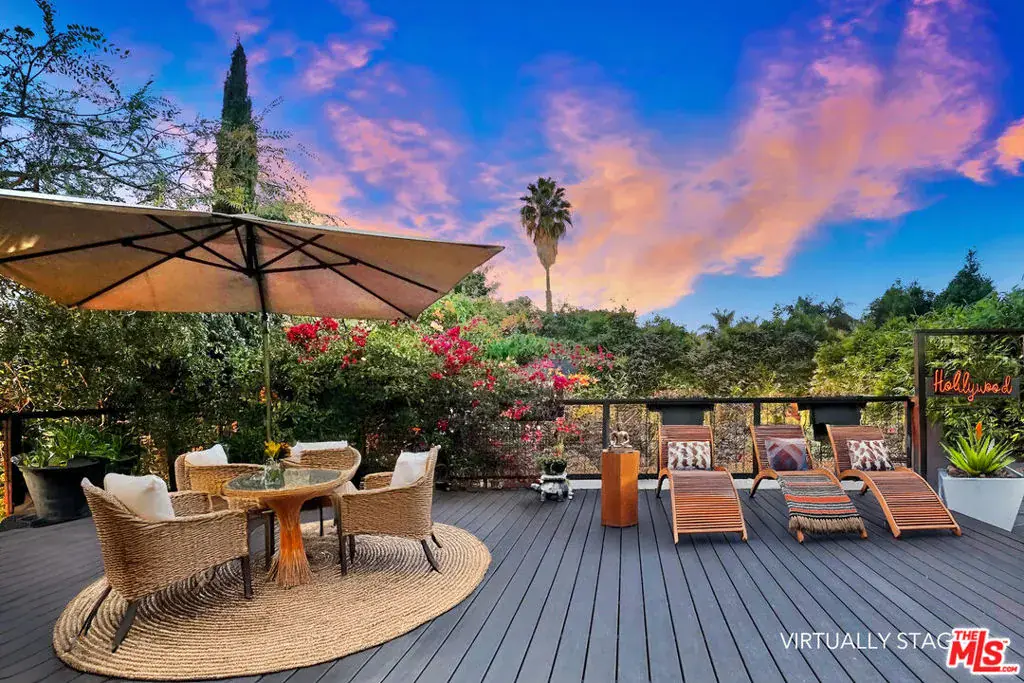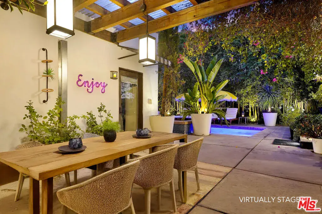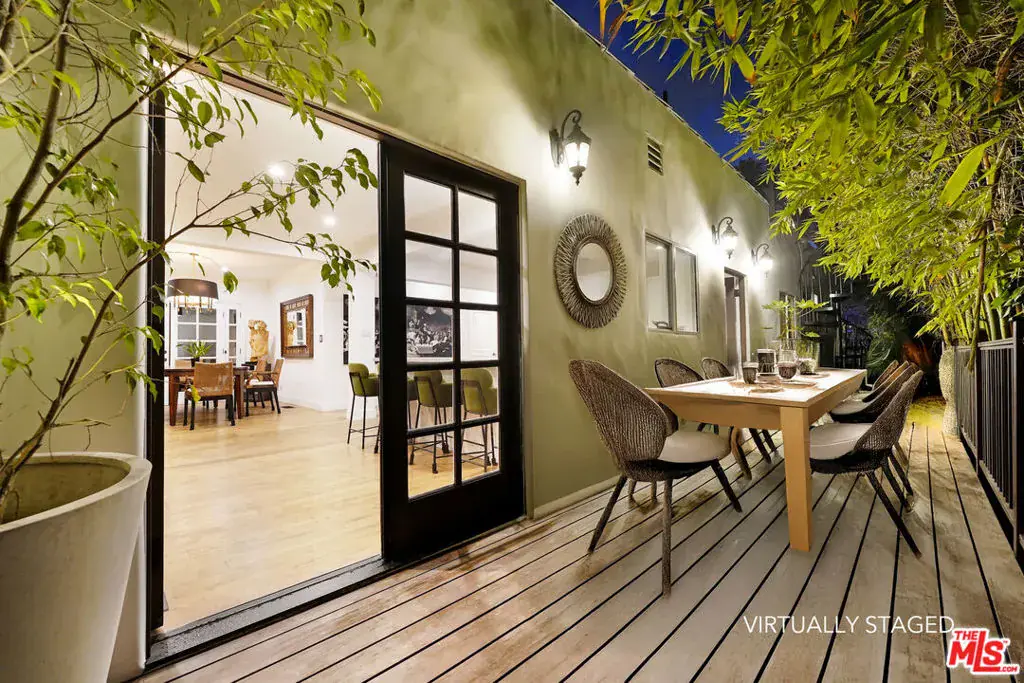 Welcome to Secret Garden WeHo, one of the largest one-story residences in the area, rebuilt and expanded in the last decade to offer a rare four-bedroom single-level floorplan ideal for effortless living and today’s modern, multigenerational household. Magically landscaped and ideally located in a walker’s paradise just minutes from six Michelin-starred restaurants, neighborhood parks, recreation centers, and local markets yet feeling a world apart. Here, every space blurs the line between home and haven.. Discover spectacular indoor and outdoor living, including a panoramic rooftop deck, in a bright, canopied, Moorish-inspired sanctuary where architecture and nature dissolve into a Zen California dream. Your journey begins the moment you step through a massive driftwood door into a lush courtyard of beautiful tiled floors and inviting seating areas – a serene prelude to what lies within. This isn’t just a home; it’s your own Secret Garden, enveloped by olive trees, silver sheens, fern trees, and exotic flora. Positioned on a privileged corner lot, this fully gated and hedged property offers rare privacy/security and effortless freedom to entertain amid the city’s vibrant pulse. Spanning over 3,000 square feet of total indoor-outdoor living space (~2,450 sqft indoor), the residence unfolds on a single level, perfectly balancing openness and intimacy. Expansive terraces and wraparound decks flow almost entirely around the home, drawing the vibrant greenery inside and creating a dreamy, seamless indoor-outdoor lifestyle. At its heart lies a grand, open-concept living area designed for both lively gatherings and quiet reflection, centered around a chef’s kitchen with a generous island, peninsula bar, and a stunning skylight that floods the space with natural light. Two primary suites, two guest bedrooms, and a versatile room with dual-access bath and outdoor deck (currently serving as an executive office with water views and an adorable nursery) offer calming vistas of gardens and greenery from every corner. Step beyond, and the magic deepens. The backyard reveals a private, sparkling pool and spa nestled among groves of bamboo — your very own resort retreat. You’ll feel transported thousands of miles away to your own slice of paradise, where time slows and the air feels lighter. Adjacent, a spacious entertaining area awaits, perfect for unforgettable al-fresco dinners. For added comfort, a detached pool house includes a full bath for guests and an infrared sauna to unwind after the day’s adventures. Finally, ascend a spiral staircase through the canopy to discover the crown jewel — a private rooftop deck that seems to lift this Secret Garden into the sky. Shielded by lush landscaping, it offers complete privacy and panoramic views of the Hollywood skyline, the Hollywood Sign, and the surrounding hills. Whether you’re soaking up the California sun or stepping away from the home office for a midday burst of inspiration, this rooftop haven is your personal sanctuary above the city. An incredibly rare offering just moments from the heart of West Hollywood, Secret Garden Weho is more than a home – it’s a feeling. Are you ready to escape to your Secret Garden?