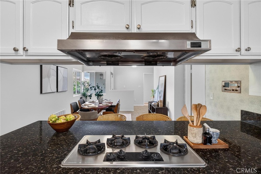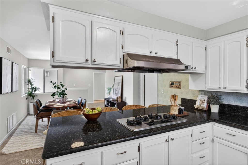 The kitchen offers granite countertops, ample cabinetry, and a practical layout that opens to the main living areas, providing both functionality and connection throughout the home.