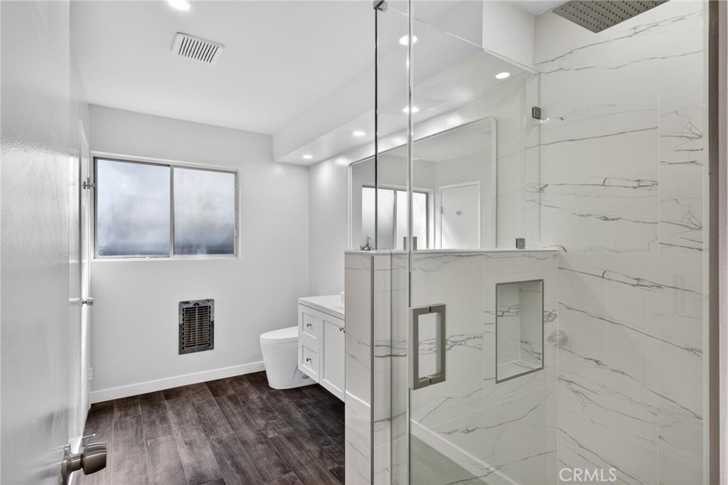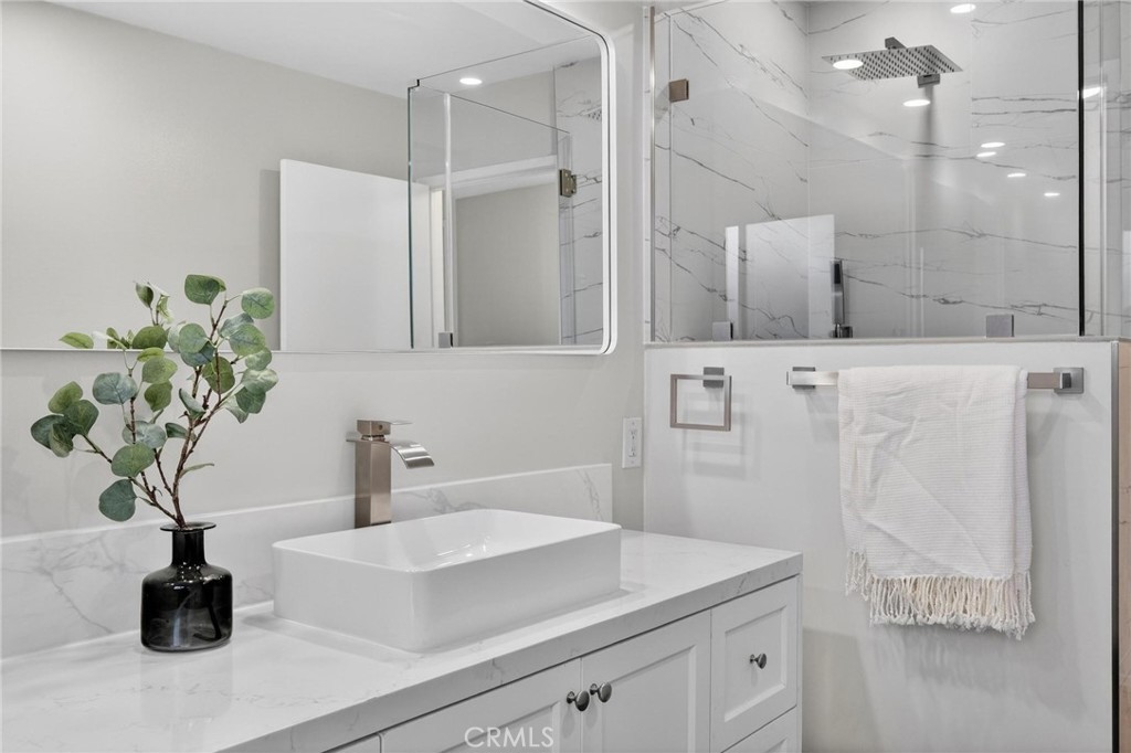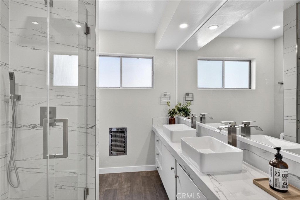 The bathrooms have been tastefully upgraded and feature modern vanities, updated fixtures, and clean, contemporary finishes, including a walk-in shower.