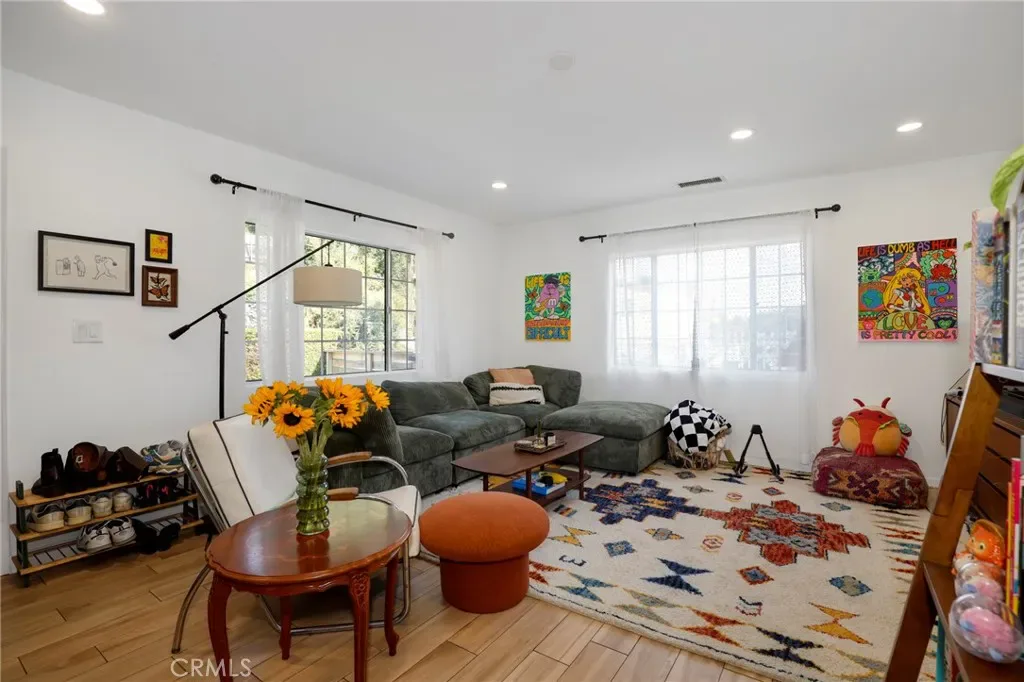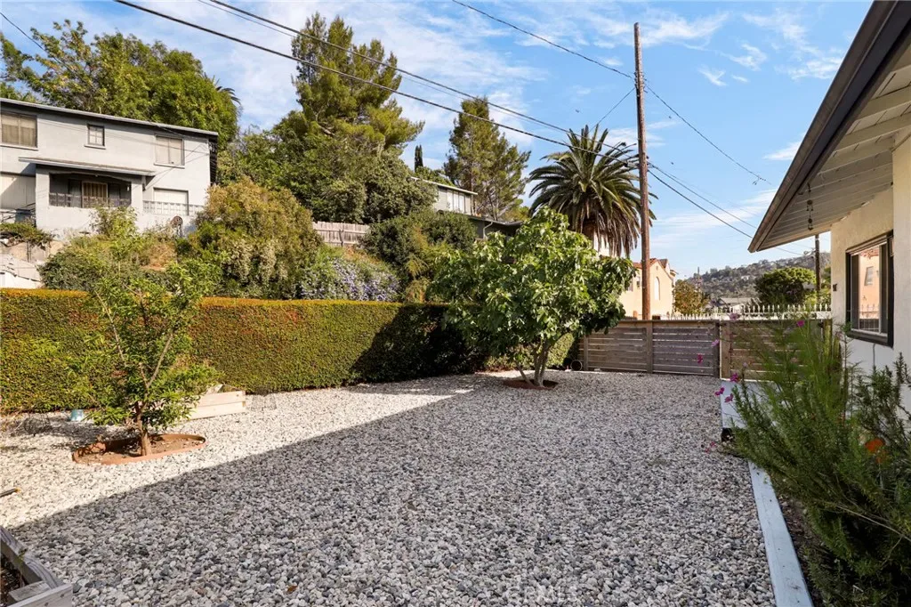 The gated front yard is a lush retreat with mature fruit trees and drought-tolerant landscaping. The expansive backyard boasts a wood pergola ideal for entertaining, plus a storage shed and oversized driveway with parking for up to five cars. Don’t miss this incredible opportunity in one of NELA’s most sought-after neighborhoods!