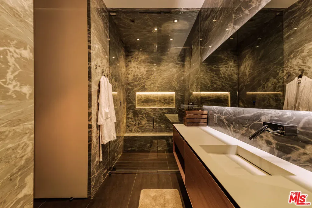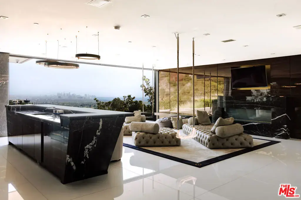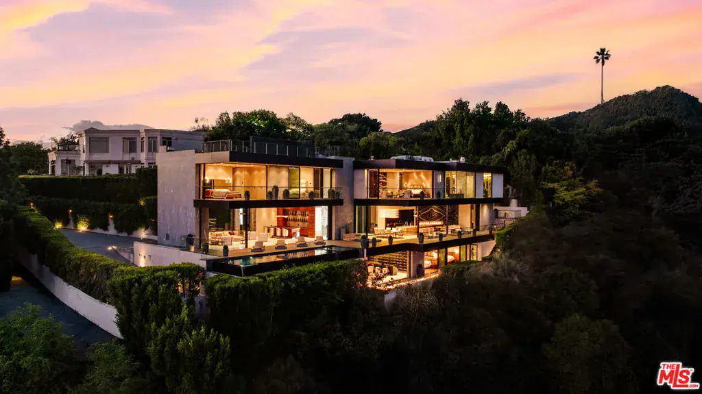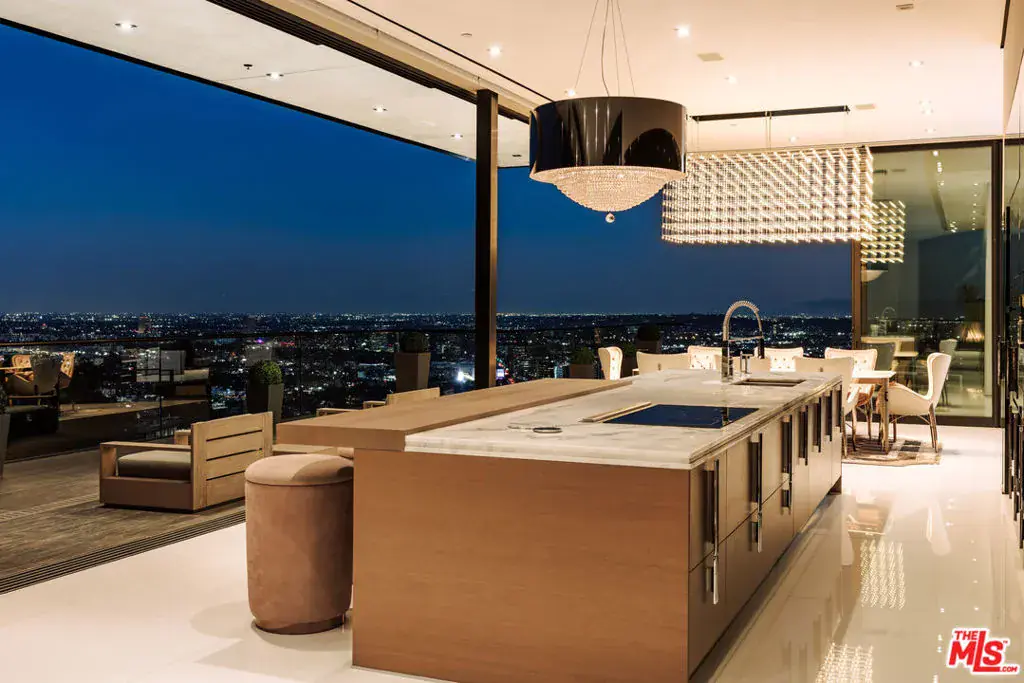True Hollywood Hills living! Perched high above the Sunset Strip, 9199 Thrasher Avenue is a turn key architectural masterpiece by internationally acclaimed architect Paul McClean, commanding one of the most dramatic vantage points in all of Los Angeles. Walls of glass frame breathtaking 280 panoramic views that sweep from the shimmering Downtown skyline to the distant coastline of Catalina Island. By day, the residence floats effortlessly above the city; by night, it transforms into a luminous observatory of twinkling lights and endless sky. A grand double-height entry with a 34-foot Murano crystal chandelier adorned with 24K gold leaf and hand-blown glass sets a tone of artistry and sophistication. The open-concept great room flows onto an expansive terrace where a sleek infinity-edge pool and spa appear to dissolve into the horizon. The custom Italian kitchen by ErnestoModa, crowned with a Fendi chandelier and fitted with Miele appliances, is as sculptural as it is functional.Every space has been designed for indulgent living and effortless entertaining from the glass-enclosed wine cellar, fully equipped gym with horizontal massage shower, and cinematic theater, to the lounge with wraparound fire pit and walls of retractable glass that blur the line between indoors and out. The primary suite is a private retreat with a bar, boutique-style showroom closet, and a spa-inspired bath that captures the essence of luxury resort living. Air conditioned 4-6 car garage with turntable and direct access to lower level. Driveway turntable as well for luxury car accessibility. Fully integrated Creston Smart Home technology, elevator for easy access and the best views in all of L.A. Don’t miss this extraordinary modern true Paul McClean trophy estate in the famous Bird Streets of the Hollywood Hills!