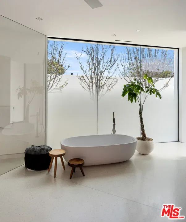 A stunning piece of architecture designed by XTEN Architects and recipient of the AIA Los Angeles Award for most influential architecture of 2020. Inspired by Stanley Kubrick’s Space Odyssey and set on a promontory on the most prime cul-de-sac in the Bird Streets. Enter through a private courtyard into high ceilings infused with natural light, walls of glass and polished terrazzo floors. Stylish and sophisticated with incredible walls for art, the property offers jetliner views overlooking Los Angeles to the ocean. Large living room, incredible kitchen/family room, professional theater, gym, dance studio, office, and much more. There is an incredible primary suite with dual closets and huge spa-like bathroom with steam shower and soaking tub. The entire house overlooks a spectacular infinity pool and large grassy yard. Additional amenities include an 8-car subterranean showcase garage. Show to pre-qualified clients only.