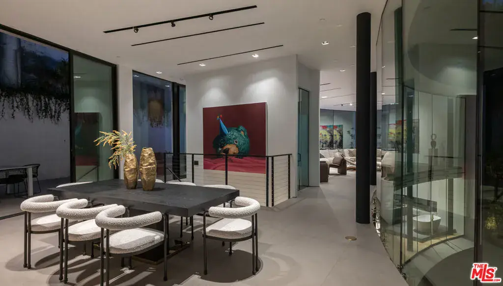 Introducing “The Curve on Thrush”, a newly constructed architectural gem nestled in the exclusive Bird Streets above the Sunset Strip. Designed by the award-winning Tag Front Architects, whose portfolio includes some of the most celebrated modern residences in Los Angeles, this sculptural glass home stands as a bold expression of art, architecture, and lifestyle at the highest level. With its sweeping curved glass facade and striking steel form, “The Curve on Thrush” is more than a residence, it is a statement piece. Elevated above the city and surrounded by multi-million dollar estates, it offers absolute privacy while being moments from the very best of Los Angeles. From world-class dining and high-fashion boutiques to iconic nightlife, this home places you at the intersection of Sunset Strip energy, West Hollywood culture, and Beverly Hills luxury.Inside, the interiors unfold with dramatic scale and seamless flow. Soaring ceilings, a floating glass staircase, and expansive open-plan living areas create a gallery-like experience designed for both grand entertaining and intimate living. Every element reflects the architectural precision and material mastery that define Tag Front’s work.Three luxurious bedroom suites are appointed with spa-grade finishes and filled with natural light. A private theater, elevator access, and full smart home integration elevate the living experience even further. Outdoors, a sleek pool and spa are framed by drought-tolerant landscaping, blending sustainability with serenity.A rare offering in one of Los Angeles’ most coveted enclaves, The Curve on Thrush is not just a home, it is a lifestyle, a legacy, and a landmark of contemporary design.