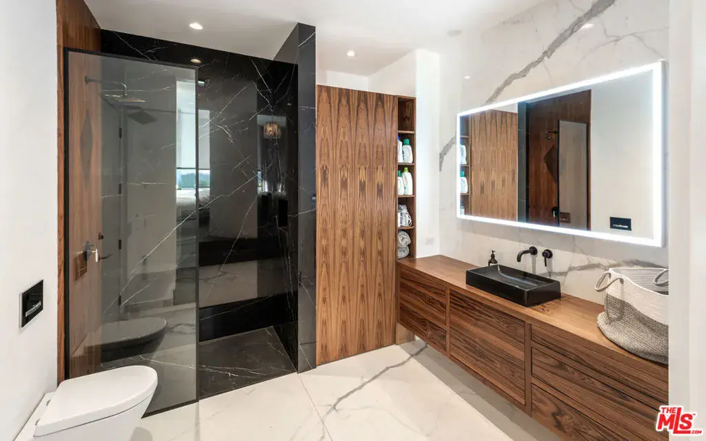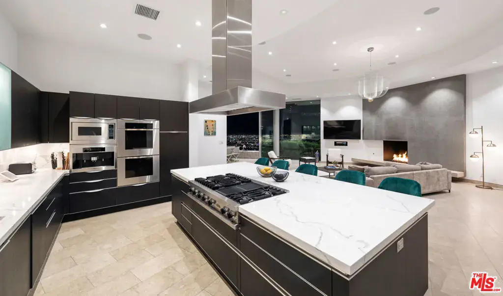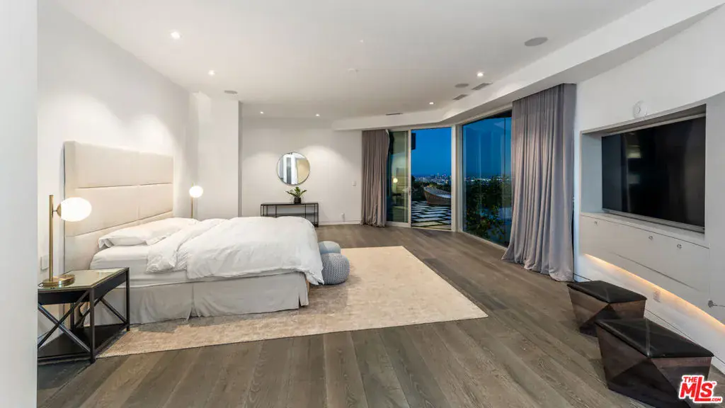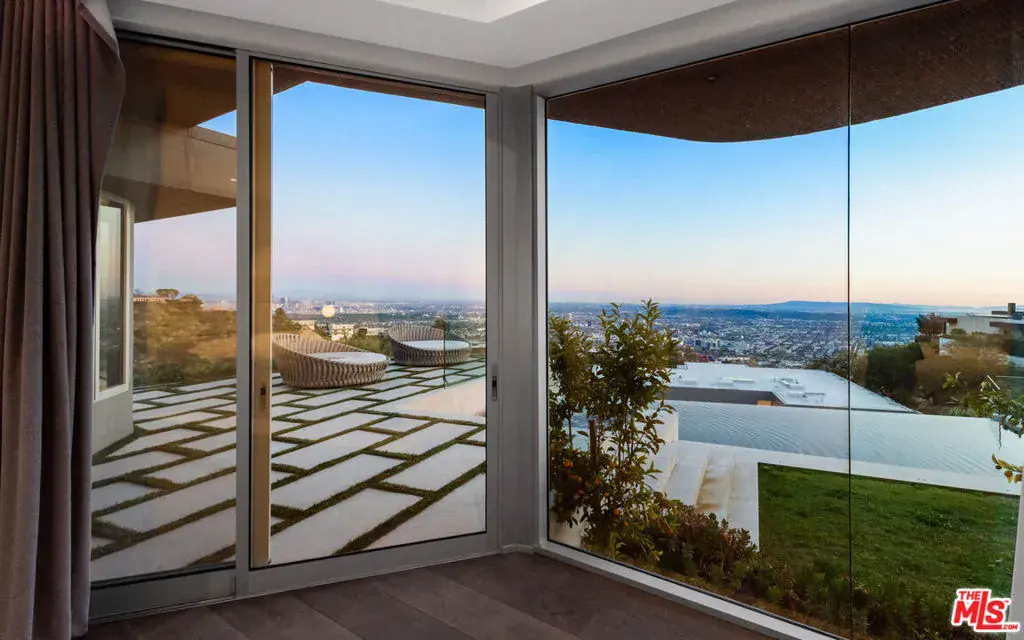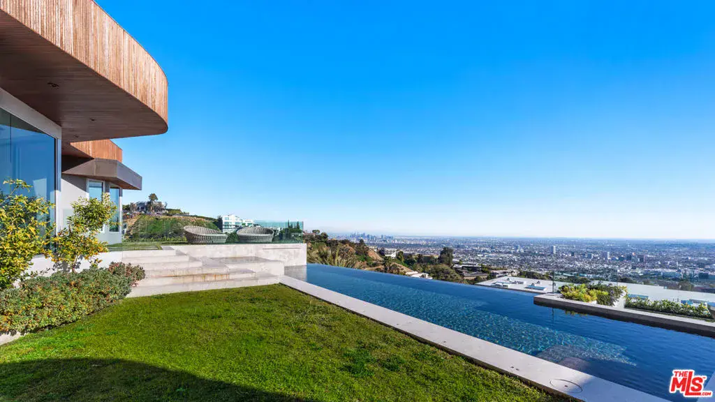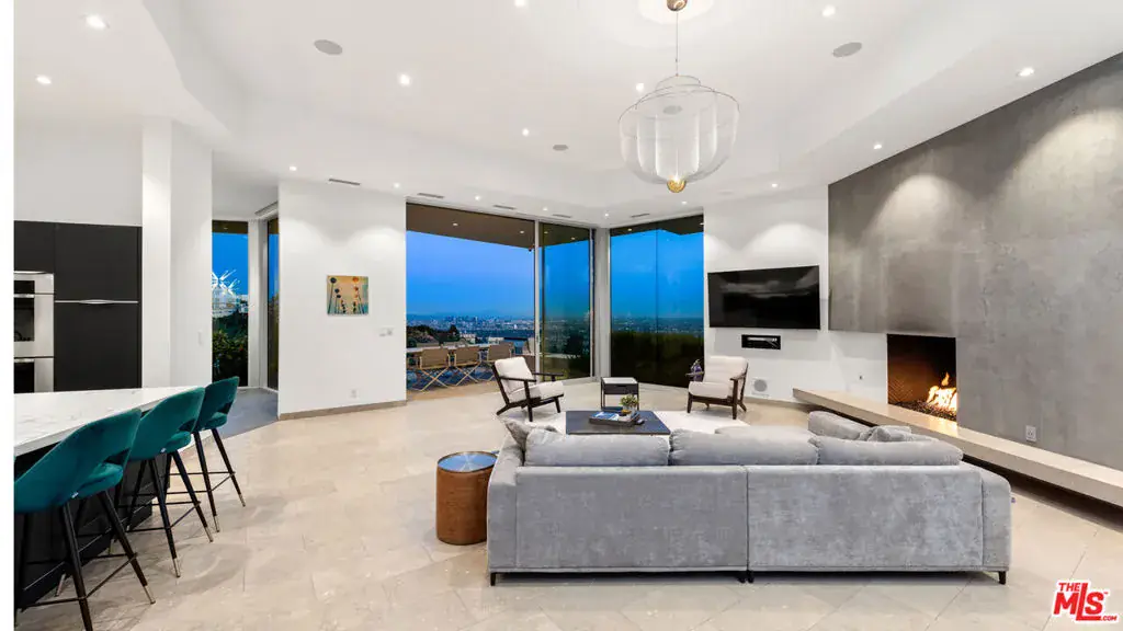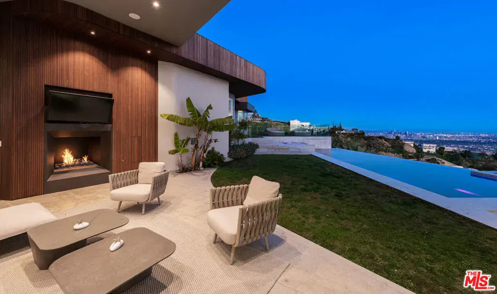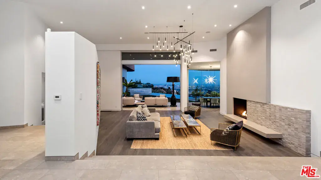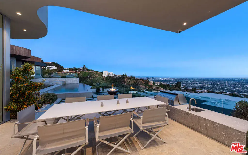 Panoramic jetliner views are the stunning backdrop to every moment you spend atop the Bird Street neighborhood in this magnificent modern estate. A grand front door is your entre into the expansive open-plan living areas with high ceilings, floor to ceiling windows, and retractable glass doors that provide you unparalleled indoor-outdoor for entertaining or unwinding, alone or with family and friends. A spacious chef’s kitchen features top of the line appliances and shares the gorgeous city views. The spectacular outdoor deck includes a covered seating area with fireplace, a covered dining area adjacent to indoor dining, multiple sun-washed lounges, an infinity pool with spa, a fire pit, BBQ, and wet bar. The expansive primary suite is a perfect retreat for your intimate moments, relaxation and recuperation with fireplace, large walk-in closet, shower, and soaking tub with a view. Sumptuous guest rooms are available for your family and friends private use. A screening room and office complete the luxurious appointments of this smartly decorated 5,700 sq ft stunner located minutes from the Sunset Strip.