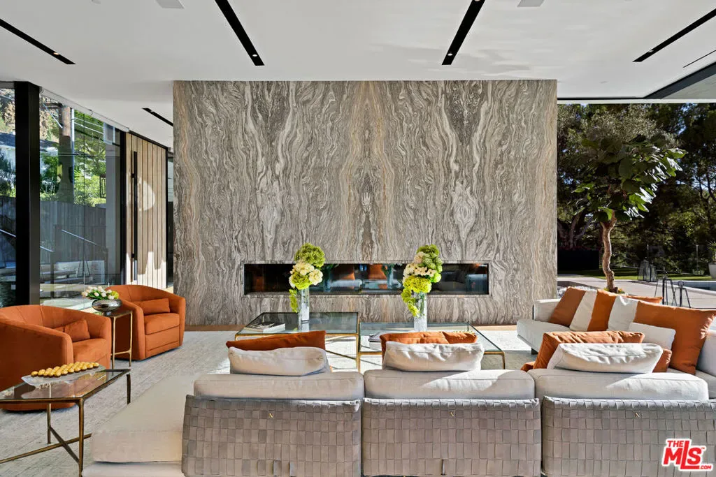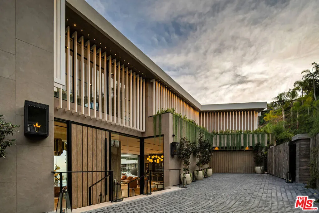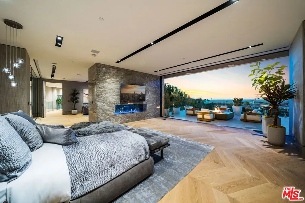 Seller accepts crypto! Conceived and executed with the modern mogul’s ambition top of mind, this newly constructed palace offers sweeping, uninterrupted views of the canyon and Los Angeles skyline, spanning 500 feet of frontage in a coveted Bird Streets enclave. Enter beneath a bespoke chandelier and cascading fountains into a 13-foot living room anchored by layered stone fireplaces. The Arclinea kitchen opens to a European-inspired wine room illuminated by a sculptural pendant. Floor-to-ceiling glass panels dissolve the line between indoors and outdoors, revealing expansive terraces with an 18-foot sunken fire pit, a 100-foot infinity pool, a 30-person spa, and a sand volleyball court, each set against sweeping vistas. The primary suite serves as a private retreat, featuring a reading vestibule, a 1,500-square-foot balcony with Jacuzzi and fire features, dual dressing rooms, and a travertine-clad bath with twin soaking tubs and panoramic views. Tailored for both comfort and spectacle, the home also includes a command center-style office, a full screening room, a gym, hookah and meditation lounges, a panic room, a shoeshine station, and more. Designed with intent, the residence is as functional as it is striking. Revel in the pinnacle of modern elegance, all while being enveloped by some of Southern California’s most breathtaking views.