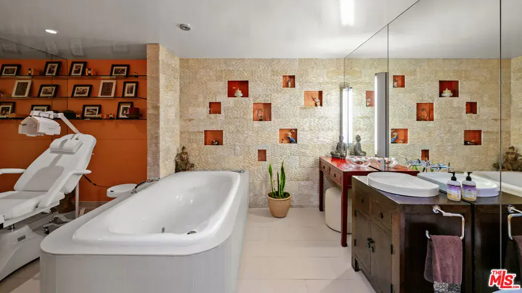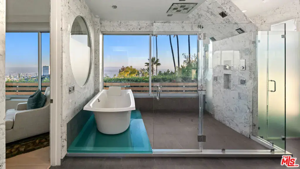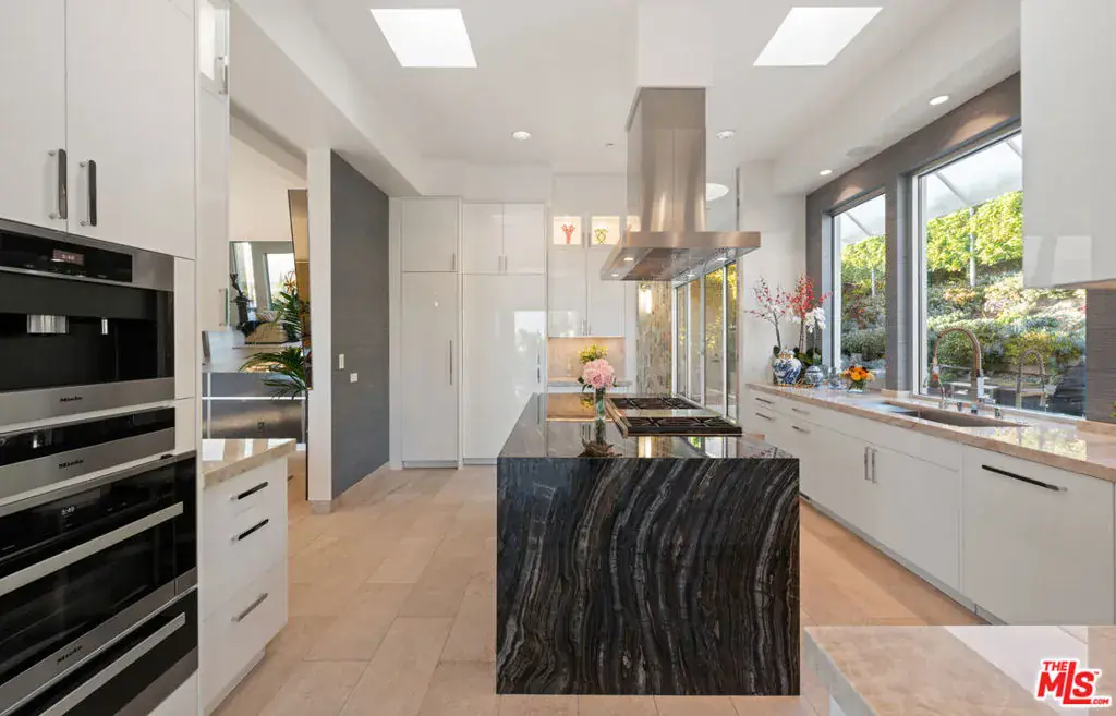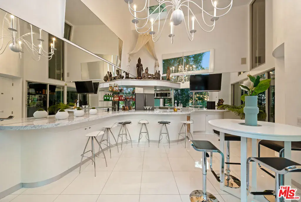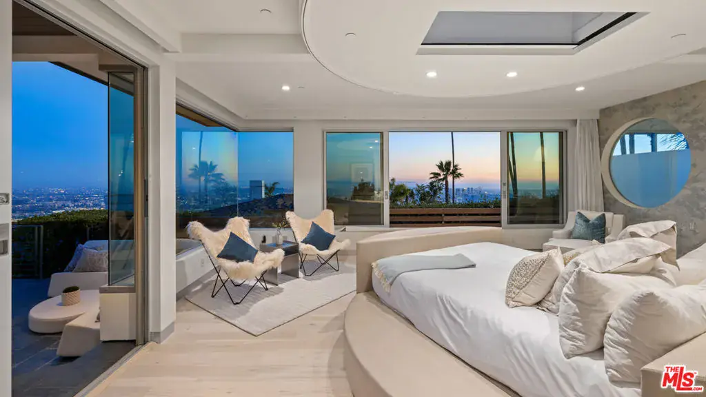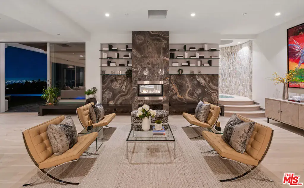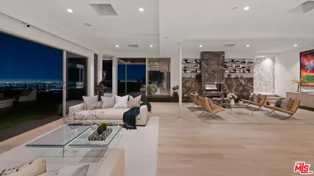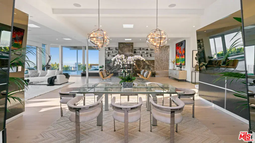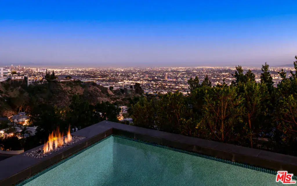 Perched atop the coveted Bird Streets in Doheny Estates, 9353 Nightingale Drive is an architectural triumph that seamlessly blends modern luxury with breathtaking panoramic views. This exquisite residence boasts an open-concept design, where soaring ceilings, floor-to-ceiling glass walls, and expansive living spaces create an effortless flow between indoor and outdoor living. The sleek chef’s kitchen is a culinary dream, featuring top-of-the-line appliances, custom cabinetry, and a stylish islandperfect for both entertaining and everyday living. Just beyond, an outdoor BBQ and seating area provide the ideal setting for al fresco dining. The primary suite is a private sanctuary, offering head-on city views, a cozy fireplace, a serene seating area, and a spa-inspired bath. A dream walk-in closet, designed with double functionality as a panic room, adds a touch of discreet sophistication. For ultimate entertainment, the home has a dedicated media room, a fitness area, and a full bar with seating, accompanied by a temperature-controlled wine cellar. The resort-style backyard is an oasis of relaxation, complete with a stunning pool, fire pit, and multiple outdoor lounge spaces all set against the dazzling backdrop of Los Angeles’ skyline. Other features include an elevator, a fireproof room, a state-of-the-art security system, and a two-car garage equipped with lifts to accommodate additional vehicles. Just moments from the world-class dining, shopping, and entertainment of the Sunset Strip, this extraordinary residence presents a rare opportunity to own one of the most iconic homes in Los Angeles.