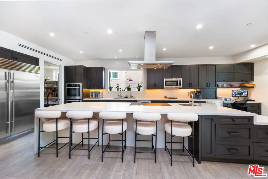 Step into refined modern living in this meticulously crafted family residence located in the heart of Beverlywood. Thoughtfully designed with both luxury and functionality in mind, this exceptional home offers an ideal setting for everyday comfort as well as effortless entertaining. The expansive open-concept layout is enhanced by soaring ceilings and skylights, filling the interiors with abundant natural light. The striking exterior features handcrafted Shou Sugi Ban wood, delivering timeless architectural appeal and exceptional durability. A whole-house water filtration system provides purified water throughout, adding an elevated layer of comfort and wellness. At the center of the home, the chef’s kitchen is equipped with top-of-the-line Miele appliances, an impressive 16-foot island, walk-in pantry, and a dedicated baker’s marble counter. Oversized sliding glass doors create a seamless indoor-outdoor connection, opening to a private backyard complete with a half basketball court, built-in concrete seating, and a fire pit, perfect for gatherings and relaxation. The main living area flows effortlessly and is anchored by a 6.5-foot fireplace, creating a warm and inviting ambiance. Upstairs, four en-suite bedrooms provide private retreats, complemented by a versatile bonus room ideal for an office, playroom, or art studio. Three outdoor patios extend the living experience, including stunning Hollywood Sign views from the primary suite. The luxurious primary retreat features its own fireplace, walk-in closet, and a spa-inspired bathroom designed for ultimate relaxation. Additional highlights include built-in garage storage and a prime location just steps away from Canfield Elementary School. A rare opportunity to lease a thoughtfully designed modern home in one of Beverlywood’s most desirable neighborhoods. Can be furnished for an additional fee.
