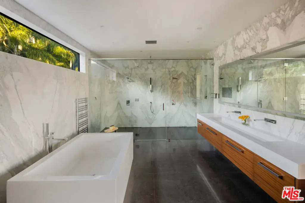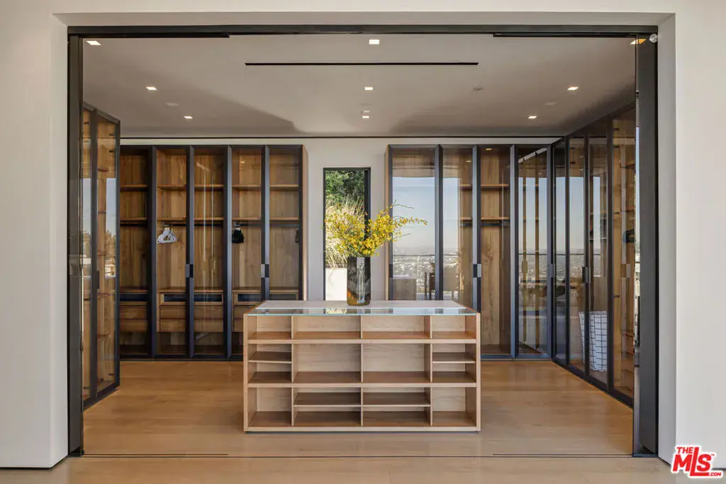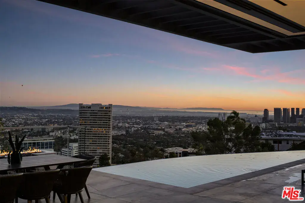 A rare architectural triumph, this estate exudes timeless sophistication and contemporary grace at every turn. From the moment you enter through the grand entry, you are immersed in a private realm of design excellence and tranquil opulence. Perfectly positioned in the prestigious Bird Streets of the Hollywood Hills, this modern showpiece showcases sweeping city and ocean views. Conceived by renowned architect Ameen Ayoub, the residence harmonizes bold modern architecture with inviting warmth achieving a seamless fusion of innovation and livability. Every element reflects masterful attention to detail. The gourmet kitchen is equipped with Miele appliances and refined bespoke finishes. Entertain in style beside the dramatic aquarium bar and infinity-edge pool, or display your collection in the striking honeycomb quartz wine gallery. Additional amenities include a sound-isolated theater, showcase garage, and a fully equipped wellness studio with sauna and steam shower. The primary suite offers an atmosphere of calm sophistication, featuring a statement fireplace, private terrace, dual spa-inspired baths, and a couture-quality dressing room. More than a residence, this property defines a lifestyle an expression of modern artistry, elevated comfort, and the quintessential Los Angeles experience.