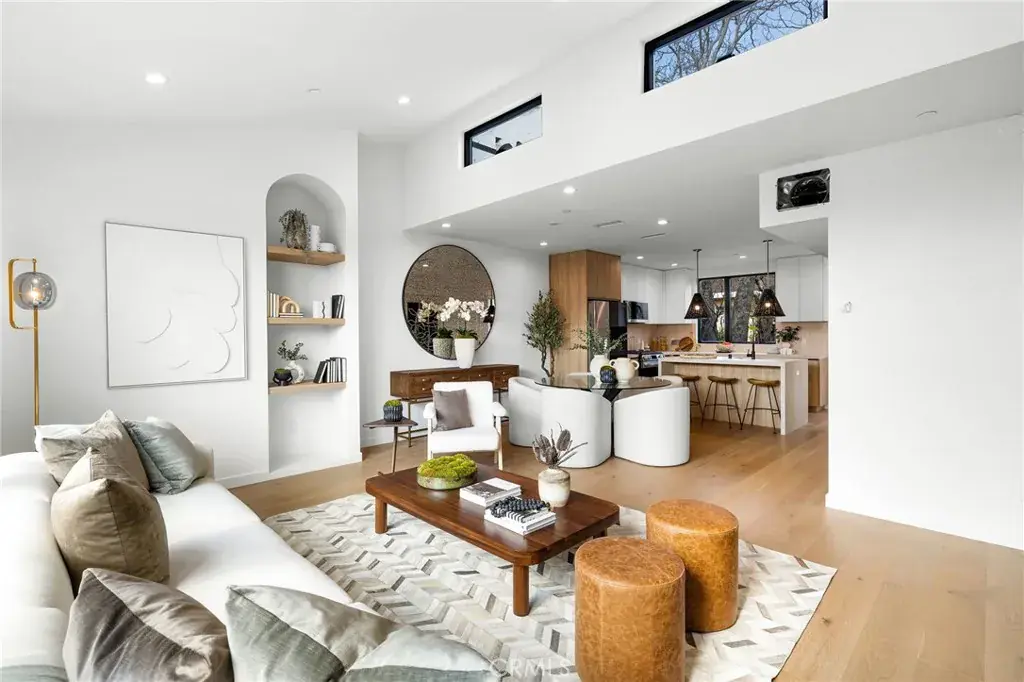 Fully Detached Single-Family Home in the heart of Echo Park with Panoramic Downtown LA Views. Situated on its own fee-simple lot with No Common Walls and showcases explosive Downtown Los Angeles skyline views from a private rooftop deck. Thoughtfully designed and meticulously built in 2025, home is positioned across from the iconic Everett Park and just steps from the vibrant energy of Sunset Blvd, with coffee shops, restaurants, and nightlife all within easy reach. Smart, sustainable, state of the art features include 6 solar panels fully paid off, LG all-electric multi-zone heating & cooling system (no gas combustion), EV charging infrastructure built-in, LG stainless steel kitchen appliance pkg + LG washer & dryer included. Curated Designer finishes include Cosentino porcelain countertops imported from Spain, Pottery Barn/Crate & Barrel light fixtures throughout, Artisan Italian & Spanish tile throughout, European white oak wood flooring and Oversized walls of glass and casement windows flood interiors with light. Smart home technology includes Yale remote electronic door lock, LG smart thermostats, Ring video doorbell, pre-wired A/V in all bedrooms & living areas. The home’s private rooftop deck is the showpiece — with pre-plumbed gas and water lines ready for outdoor kitchens and gatherings. Enjoy unforgettable sunsets and skyline views, host friends under the stars, or create your own rooftop garden oasis — all with front-row panoramic views of Downtown LA.