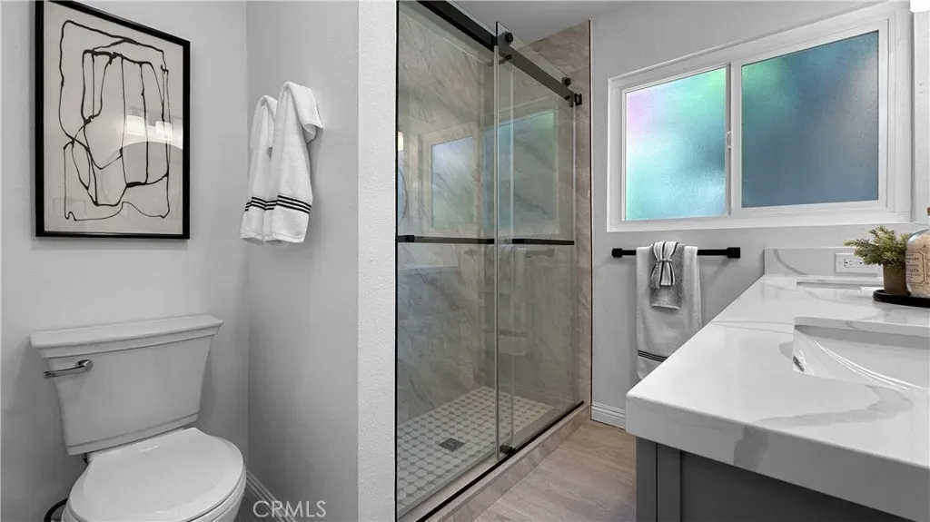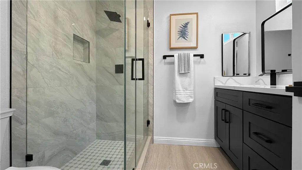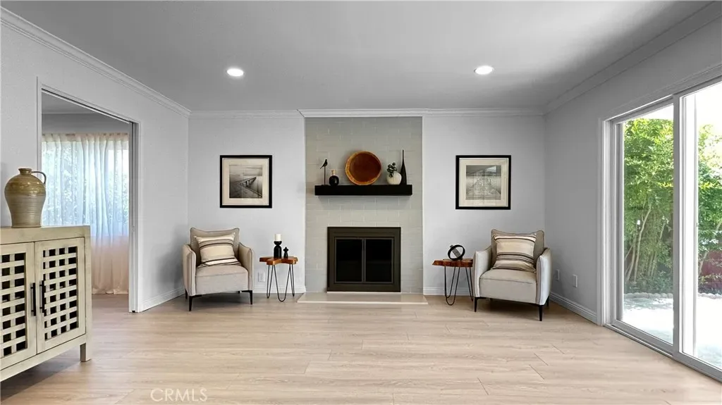 Convenient location; Wonderful home; Cozy front court yard; Open floor plan; Abundant natural light; Wood flooring; Quartz countertops; Stainless appliances; 2 dual sinks in bathrooms; Beautiful fireplace in family room; Kitchen opens to dining area; Large glass sliding door opens up to tranquil backyard; Inviting patio; Variety of fruit trees; Low maintenance yard; Laundry inside of house.