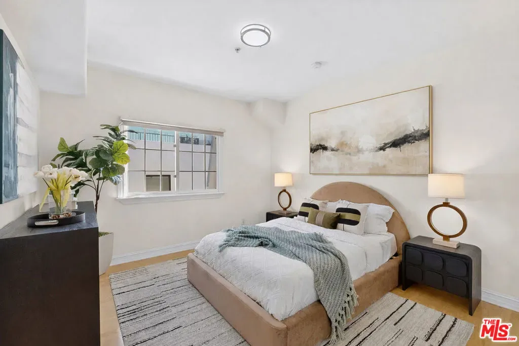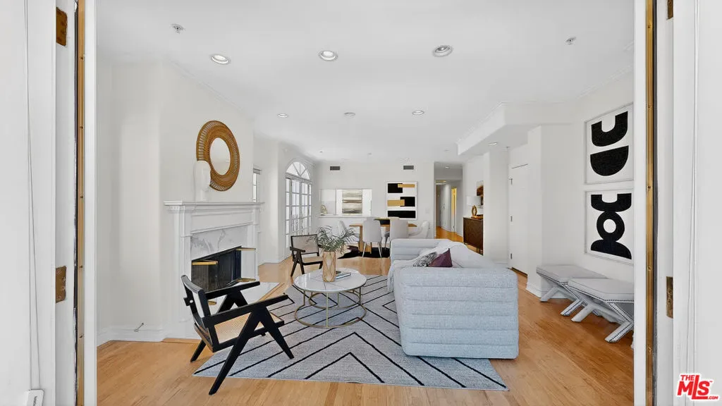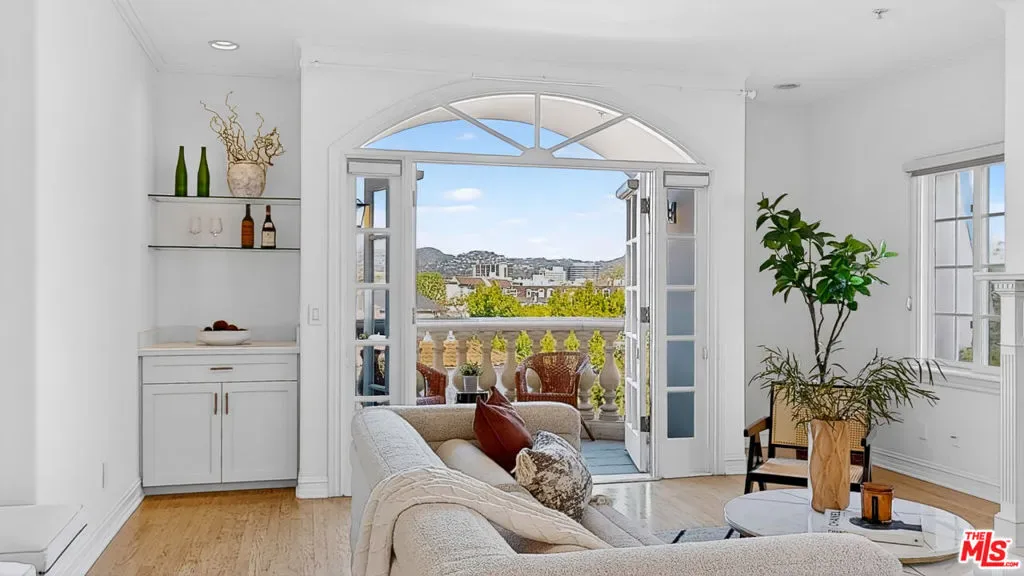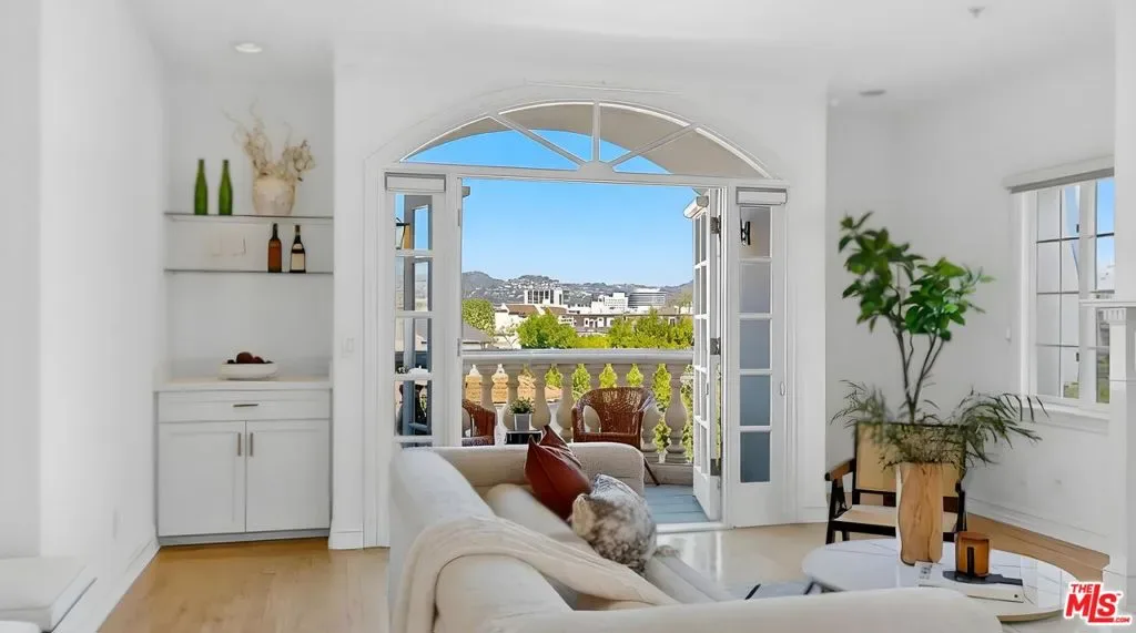 Perched atop a quiet, tree-lined street in prime Beverlywood, just moments from Beverly Hills, this top-floor penthouse has been newly renovated with a sophisticated design. The 2-bedroom, 2.5-bath residence blends timeless elegance with modern luxury. Bathed in natural light, the interiors are framed by oversized windows that create a luminous, gallery-like ambiance throughout. The formal living room is both dramatic and inviting, anchored by a statement fireplace and highlighted by arched French doors that open to a private balcony. From here, sweeping mountain vistas and shimmering Beverly Hills city lights provide a breathtaking backdrop for sunset evenings. The kitchen has been impeccably renovated with top-tier, brand-new appliances and curated finishes. A deep-basin farmhouse sink, bespoke cabinetry, and an intimate breakfast nook evoke effortless European charm while delivering modern functionality. The primary suite is a serene retreat, offering a generous walk-in closet plus an additional reach-in closet. The spa-caliber primary bath features a double vanity, freestanding soaking tub, and a separate glass-enclosed shower, creating a true sanctuary experience. The secondary bedroom is also en suite, and a chic powder room serves guests with understated elegance. A spacious in-unit laundry room, two secured parking spaces, and private storage complete the offering. Ideally located adjacent to Beverly Hills, Century City, and Hillcrest Country Club, and moments from world-class shopping, dining, parks, and places of worship, this penthouse represents a rare opportunity to own a turnkey, light-filled retreat in one of the Westside’s most sought-after neighborhoods. Please note that certain images have been virtually staged for illustrative purpose.