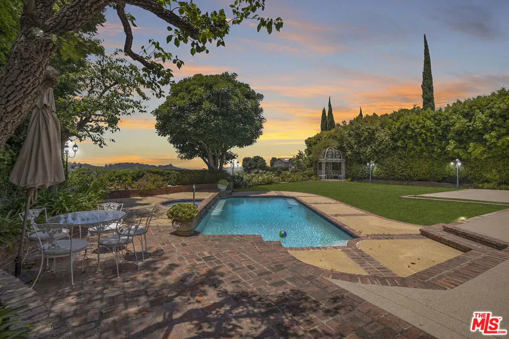 Feel like you have stepped into Architectural Digest as you enter this newly renovated, pristine estate in the exclusive, guard gated Bel-Air Park. Offering luxury, privacy and security, this home was designed for modern living, elegance and even a multi-generational family. Upon entering the modern yet elegant foyer, the gorgeous views of the hills, valley lights and huge backyard are instantly inviting. A spacious and beautifully appointed formal dining room is large enough to accommodate a dining table for 12 or more people. The house boasts three unique living areas: a formal living room to receive guests as they arrive, a huge entertainment room with a large custom stone bar, fireplace and Fleetwood pocket doors to enjoy the expansive views and a theatre-like TV room with surround sound and adjacent wine closet. The gourmet, light-drenched kitchen would delight any chef, with its high-end appliances, massive and illuminated Crystallo stone island and plenty of work space and storage. Any entertainer or cook will appreciate all the duplicate appliances, including two dishwashers, two Wolf ranges, two Wolf ovens and an oversized Sub Zero refrigerator and freezer accompanied by two-drawer refrigerator under the counter. The kitchen’s breakfast dining table enjoys natural breezes and views of the backyard, pool and canyons. The downstairs includes both a full bath and powder room. The living areas downstairs, the front yard, and the master bedroom upstairs, all have a sound system. Down the hall, there is a large utility room with washer and dryer and room for another refrigerator. Continue further to find a downstairs bedroom with en-suite full bathroom and a side entrance (a maid’s quarter’s perhaps). Follow the elegant main staircase or another back staircase to the second floor to find 4 very large secondary bedrooms with ample closet space and en-suite bathrooms. A second utility and laundry room offers additional convenience and storage. The west-facing primary bedroom is a true sanctuary, bathed in jetliners views and natural light. The large sleeping area has a fireplace and French doors that open to a Juliette balcony. The adjacent luxurious retreat includes a with wet bar to make your morning coffee and then take it to the private balcony to start your morning with a relaxing view and sunshine. The spa-like primary bathroom is a soothing and luxurious, with double vanities, marble slab walk in shower, freestanding bathtub, two private toilet rooms equipped with top of the line Neorest Toto toilets. Two large walk-in closets offer plenty of space for large wardrobes. A unique and special characteristic of this home is the secondary quarters that features 2 extra bedrooms, a full bathroom, living room and kitchenette, accessible from a private entrance on the outside ground level. These quarters, up a private third staircase, can be locked and isolated from the rest of the house or kept integrated into the larger living space. This is a perfect solution for a multi-generational family with private living space needs for parents, younger adults or other extended family or guests. Alternatively, it could provide rental income or even a professional work-from-home office space. Opportunities abound! This house is on the largest lot in the area and offers a large, flat and grassy back yard ideal for a kid’s play area or entertaining. The west-facing, solar-heated pool and spa enjoy long days of sun. The landscaped front yard includes an 8-car motor court in addition to the 3 car garage. The whole property is designed for privacy and security. Either side of the backyard is lined by tall, mature trees. The house has electric security gates from the street entrance and there is a 8 camera security system with recording capability. The Bel Air gated community also provides security monitoring and 24/7 patroling. This home must be seen and experienced to be believed!