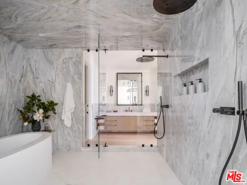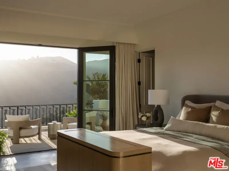 PRICE REDUCTION! $49,500,000. The Westside’s most exclusive offering – a rare and exciting opportunity to acquire the only completely redone tennis estate in the ultra-private enclave of Brentwood Country Estates, the guard-gated community of just 13 homes known for its unmatched 24/7 security, privacy and gorgeous views. Gracefully sited on its own five acre promontory, behind its own gates, this truly one of a kind property, completely reimagined and redesigned, is offered fully furnished, ready to welcome you without delay. When you arrive, you are overtaken by a sense of serenity, peace and calm. Taking your first breath of the mountain air, you can feel yourself starting to relax. Where else west of the 405, can you live in your own five star resort and enjoy the low key comforts of home? A “welcome home” lounge area is the first “Oh wow” moment, leading through the property to the many curated outdoor areas, each providing private spaces for different ways to enjoy the ultimate California lifestyle. The gorgeous pool and spa invite you to luxuriate in the afternoon sunshine. Surrounding the pool, the expansive lawn offers a fun putting and chipping green. Beyond through the olive tree lined walkway is a sunken and lit tennis court, easily converted for pickleball and basketball, with a viewing pavilion complete with its own changing room and bath. The property is beautiful during the day, but in the evening it absolutely glows with gorgeous lighting and music everywhere. The approximately 9960 square foot interior is filled with natural light and stylish sophistication. The sightline of the entry hall previews great things to come, and it does not disappoint. The entry leads to the formal living room and expansive dining room, flanked by a beautiful office all with floor to ceiling windows offering views of the perfectly manicured grounds. The heart of the home is the chef’s kitchen with a spacious breakfast area with its own big screen TV, temperature controlled wine room, and oversized island, with all the best high end appliances, double Wolf range, double side by side Dacor refrigerators, three sinks, and “they thought of everything” butler’s pantry. Right outside the kitchen facing the mountains, through two sets of French doors, the barbecue and outdoor dining areas provide the perfect venue to gather under the stars and watch the moonrise. Adjacent to the kitchen is a fabulous family room, designed for pool, backgammon or just hanging out until dinner is ready. Motorized black-out drapes can convert this space for snuggling up on a comfy sectional to watch your favorite movie. The first level also features a large guest suite, and commodious laundry room with double appliances, a mud room and plenty of storage. On the second level, the dreamy primary suite offers a sanctuary with peaceful views to the sky and mountains, reminiscent of your last great trip to Tuscany or Provence. Tons of mirrored closets and built-ins separate the two sides to the bath area, connected by a distinctive wet room double shower and tub. Three additional ensuite bedrooms provide comfort and privacy for guests or family, and a fully equipped gym completes the upper level. The entire home is powered by a state-of-the-art Crestron smart system, offering seamless control of lighting, music, climate and security with cameras everywhere. In addition to the oversized three car garage, the circular motorcourt is large enough to accommodate ten cars. Located in lower Mandeville Canyon, Brentwood Country Estates, provides easy access to Santa Monica, and other areas of the Westside, with wonderful restaurants, shops, hiking trails, golf and the beach minutes away.