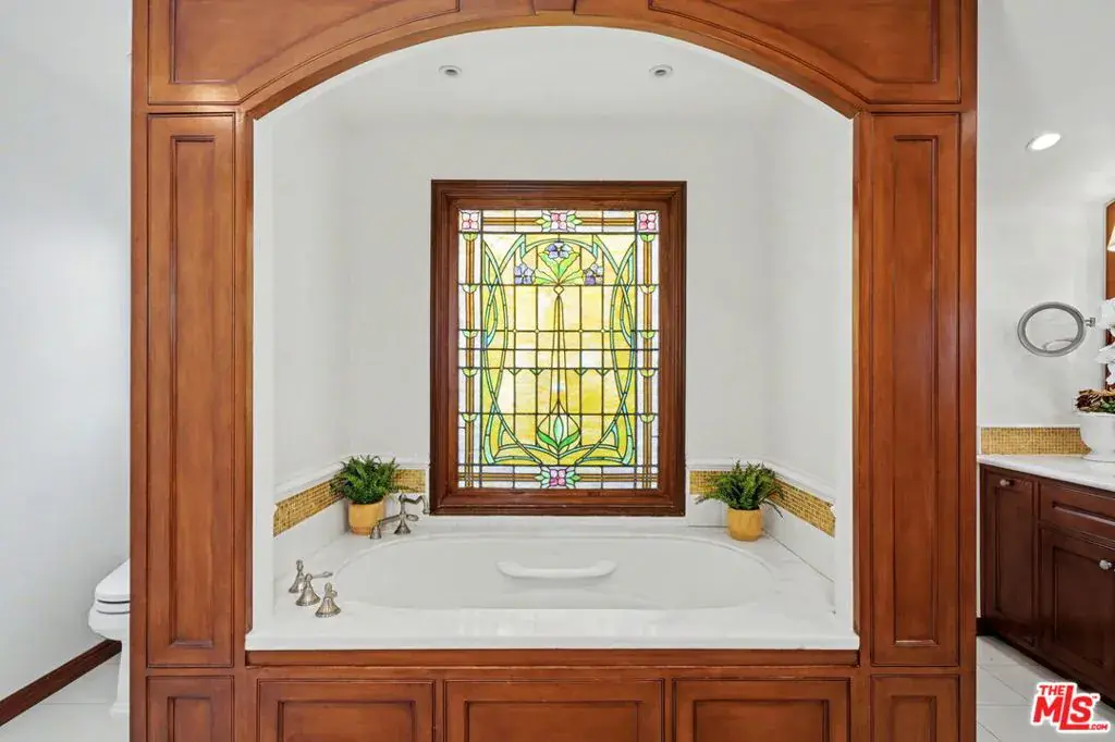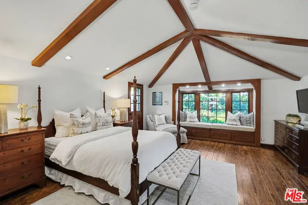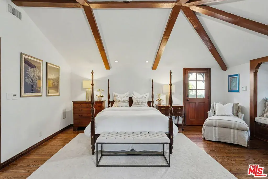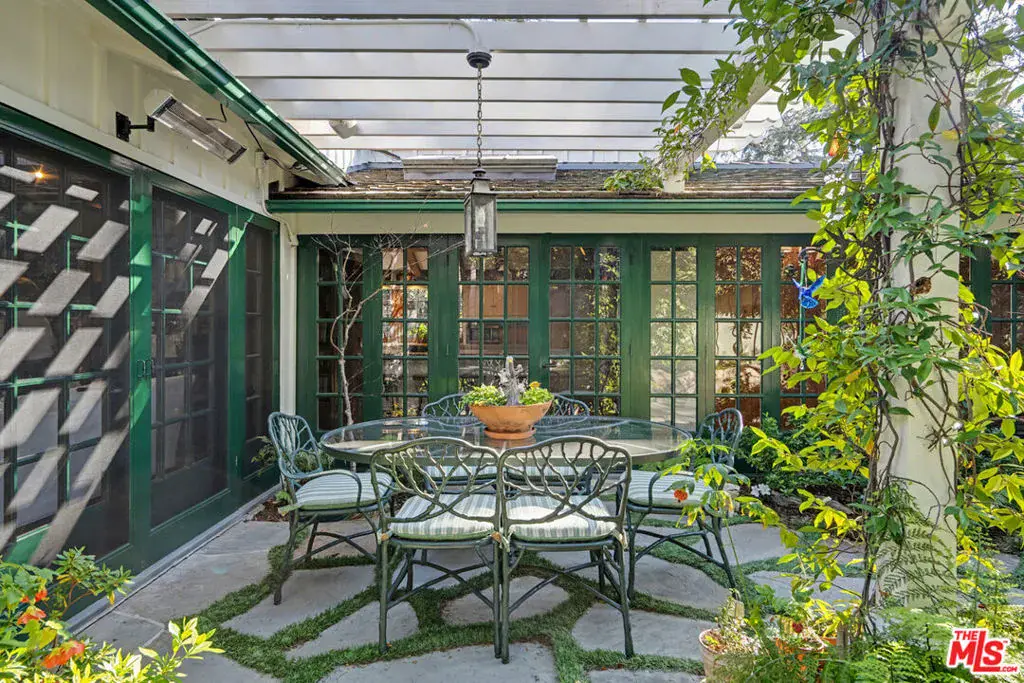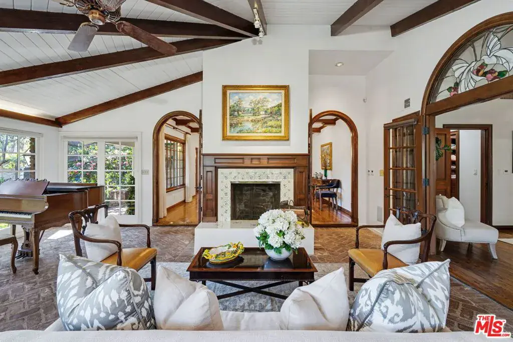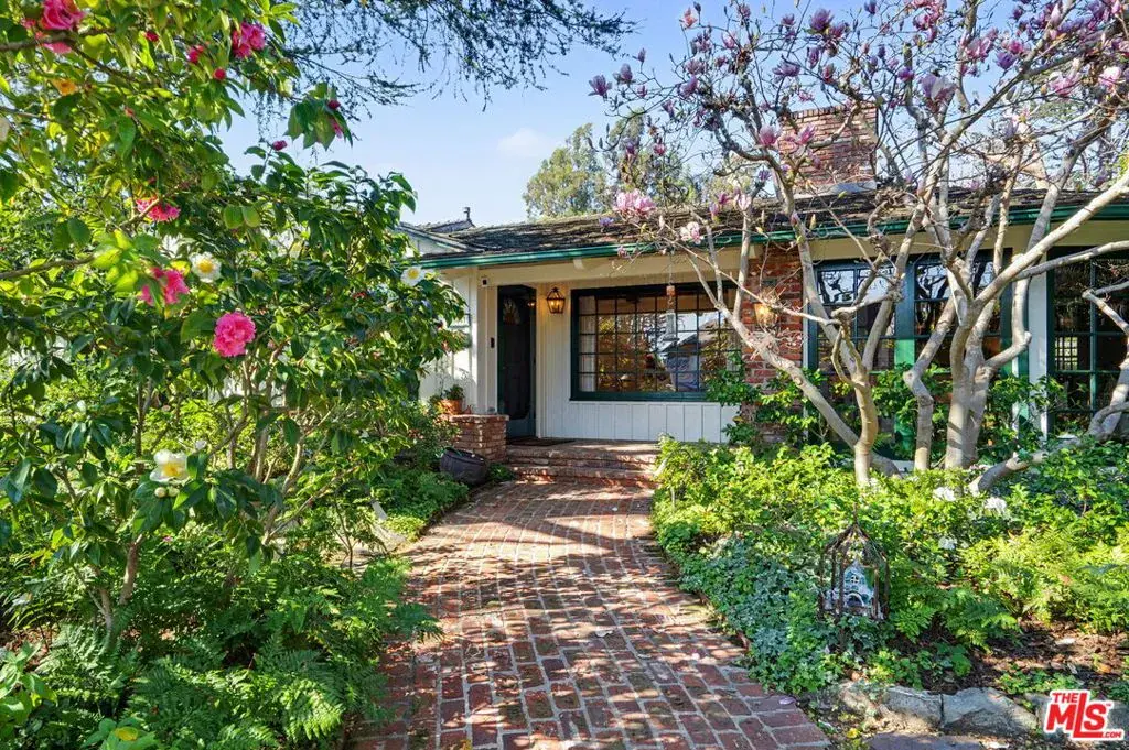 Offers to be received by Tuesday, 02/03 at 5 pm. Evoking the charm of Montecito’s San Ysidro Ranch, this one-story traditional residence is set behind lush, mature landscaping in prestigious Brentwood Park. A covered front porch opens to a welcoming entry with a powder room and a spacious living room centered around a hand-carved fireplace, with large windows framing serene garden views. The formal dining room features a paneled butler’s pantry that connects seamlessly to the spacious kitchen, which offers marble countertops, a butcher-block center island, double ovens, and a built-in brick barbecue overlooking the pool and grounds. The adjacent family room is an incredibly inviting place to relax, featuring high-beam ceilings, a charming fireplace, and built-in bookshelves. The resort-style pool was designed by renowned landscape architect Garrett Carlson and featured in a published work. The gardens are truly an exceptional sanctuary, with a koi pond, children’s playhouse, and lush landscaping. A sunroom with soaring beam ceilings, a fireplace, and walls of glass provides seamless indoor-outdoor living. The primary suite overlooks the gardens and includes a spa-inspired bath with a steam shower. Three additional bedrooms offer flexible living, with one having direct outdoor access. Additional features include a two-car garage with direct access and a dedicated exercise space. Located on a private corner lot, which adds approximately 5,479 sqft of additional outdoor gated space. This rare single-level estate-style home offers warmth, privacy, and tranquility, moments from Brentwood’s finest amenities.