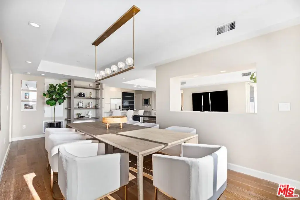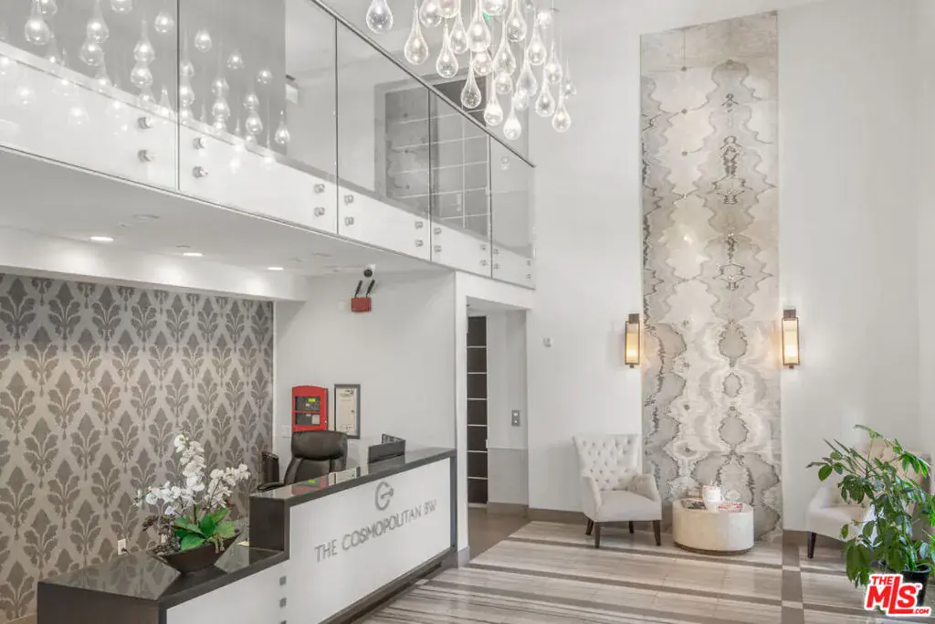 Experience elevated Brentwood living in this refined residence within a full-service luxury building. The Cosmopolitan BW offers 24/7 concierge and a full-service front desk, and is home to an elegant 2-bed, 2.5-bath residence with a spacious open layout, intentional accent lighting, wide plank oak wood floors, and expansive windows. The generous living space extends to a small private balcony and a sizable dining area that can comfortably seat up to eight. The gourmet kitchen features top-of-the-line stainless-steel Fisher & Paykel and Bosch appliances, a Wolf range, sleek white cabinetry, a large island with bar seating, and ample counter space. An in-unit washer/dryer adds everyday convenience. Both bedrooms include ensuite baths, while the primary suite elevates comfort with a soaking tub, dual vanities, and a large walk-in closet. Residents enjoy premium amenities including a state-of-the-art fitness center, heated pool, outdoor lounge with fire pit, and a tranquil meditation garden.Just moments from top-rated schools, acclaimed restaurants, boutique shopping, and the iconic Brentwood Country Mart, this home offers a sophisticated and effortless Brentwood lifestyle.