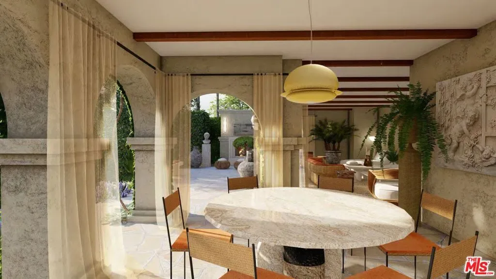 EMOTIONAL SPANISH COLONIAL REVIVAL VILLA, Don Uhl, AIA, circa 1927. Set in the prestigious celebrity enclave of Las Colinas Heights, this landmark Spanish Colonial Revival residence originally crafted by renowned architect Don Uhl, is a rare opportunity to reimagine a timeless architectural treasure. Surrounded by notable estates and historically significant properties on a quiet cul-de-sac, the home boasts panoramic jetliner views stretching from Downtown Los Angeles to the Pacific Ocean. Stripped to the studs and awaiting a transformative restoration, the property offers an extraordinary canvas whether to fulfill the vision of the current owner (renderings available upon request) or bring your own aesthetic to life. Plans call for a breathtaking full-scale restoration and reimagining, inside and out. From the formal entry, you’re drawn into a grand, Chateau Marmont-inspired great room featuring original hand-stenciled ceilings, an oversized fireplace, and French doors that open onto an expansive terrace with sweeping city-to-ocean vistas. The main level also includes a formal dining room, butler’s pantry, kitchen, and powder room all with direct access to the two-car garage providing a layout ideal for both refined entertaining and modern-day living. The home offers four spacious ensuite bedrooms with ample opportunities for custom closets or expanded living configurations. On the lower level, a columned, covered loggia evokes Mediterranean elegance and provides versatile open-air space for lounging, entertaining, or wellness use. This level also includes a secondary kitchen and access to the beautifully hedged backyard. The private garden features a dramatic swimming pool, an elevated spa, and multiple landscaped zones for outdoor living. Uhl’s architectural hallmarks harmonious balance of ornate detail and connection to nature lives on in this masterpiece. His legacy includes iconic estates in Beverly Hills and Hancock Park, notably the MGM Louis B. Mayer Estate. This is more than a property, it’s a legacy opportunity, inviting both discerning end-users and visionary developers to complete a masterpiece in one of Los Angeles’ most storied neighborhoods. Some images may be digitally altered or virtually staged. Renderings are for illustrative purposes only and may not reflect final design or condition.