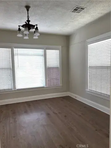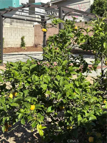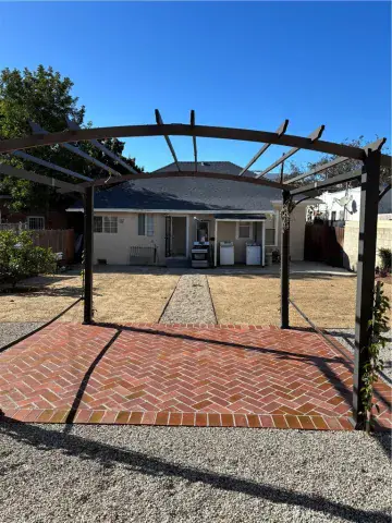 Large backyard with new landscaping, mature trees, plants, and a central arbor ideal for outdoor gatherings. Gated front yard with iron gate provides ample parking for up to three vehicles. Refrigerator, washer, and dryer included.
