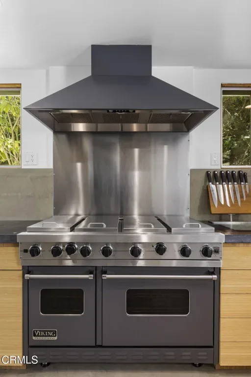 Nestled on Lower Dixie Canyon 6 minutes from Harvard Westlake HighSchool and 15 minutes from HW Middle School, this light-filled multi-level home sits on a unique triangular lot surrounded by natural forested land with no direct neighbors to the south or west–offering exceptional privacy and serenity.Thoughtfully designed half-levels and spacious landings create a comfortable flow throughout. The main living room on the second floor features soaring 10′ ceilings and a custom fireplace, opening seamlessly to a tranquil backyard patio.The industrial-style kitchen and dining area showcase polished concrete floors, custom in-laid concrete counters, bamboo cabinetry, and a large pantry. A Viking range and glass-front Sub-Zero refrigerator complete the space, all framed by hillside nature views that add an artful, chic atmosphere.The private top-floor primary suite offers a walk-in closet and a luxurious ‘wet room’ bath with heated floors and towel rack. The second bedroom on the main level overlooks the patio and hillside from its private balcony and includes built-in shelving, ideal as a bedroom, home office, or gym. A third bedroom on the entry level features a 3/4 bath and laundry area.Additional amenities include an alarm system with cameras, soft water system, ample storage, and a two-car attached garage with an electric vehicle charger. Landscaping maintenance is included.Lease terms are negotiable. Offered furnished or unfurnished. Pets ok.