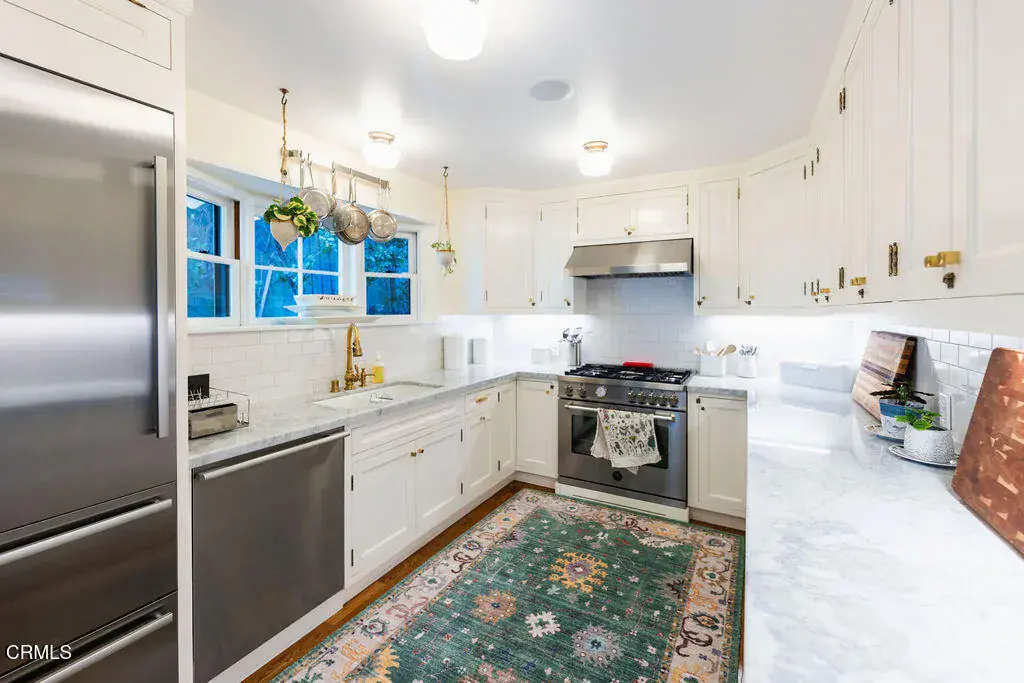 Welcome to this FULLY FURNISHED 3-BED, 3-BATH, 2,515-SF hillside retreat in the heart of LOS FELIZ Hills. Designed by Robert Byrd and located above Los Feliz Boulevard on a peaceful, tree-canopied street, 4053 Cromwell offers the peace and privacy you’ve been daydreaming about. Set behind soaring hedges and accessed via a landscaped front staircase, you’re welcomed by a generously sized plunge pool and front patio. With peek-a-boo views of Downtown Los Angeles and lots of greenery for privacy, this is an ideal place to unwind from a long day! The living room, dining room and breakfast nook are filled with natural light thanks to large windows throughout. The first of three bedrooms & baths is located on this main level/first floor, along with the laundry room. Upstairs, both bedrooms have ensuite bathrooms and walk-in closets. The primary suite includes a sitting area with decorative (non-functional) fireplace, an attached sunroom/library, and direct access to a back deck surrounded by greenery. The home also offers a backyard with a shaded outdoor dining area and one-car GARAGE PARKING. This home is truly turn key, coming FULLY FURNISHED also including kitchenware, linens plants and more! PETS are allowed (max2) with approval. Tenant to pay all utilities. Conveniently located just moments from Griffith Park, The Greek Theatre, and the shops and restaurants along Hillhurst and Vermont Avenues, with easy access to nearby Silver Lake, Atwater Village, and Echo Park. Available now. Easy to show – by appointment!