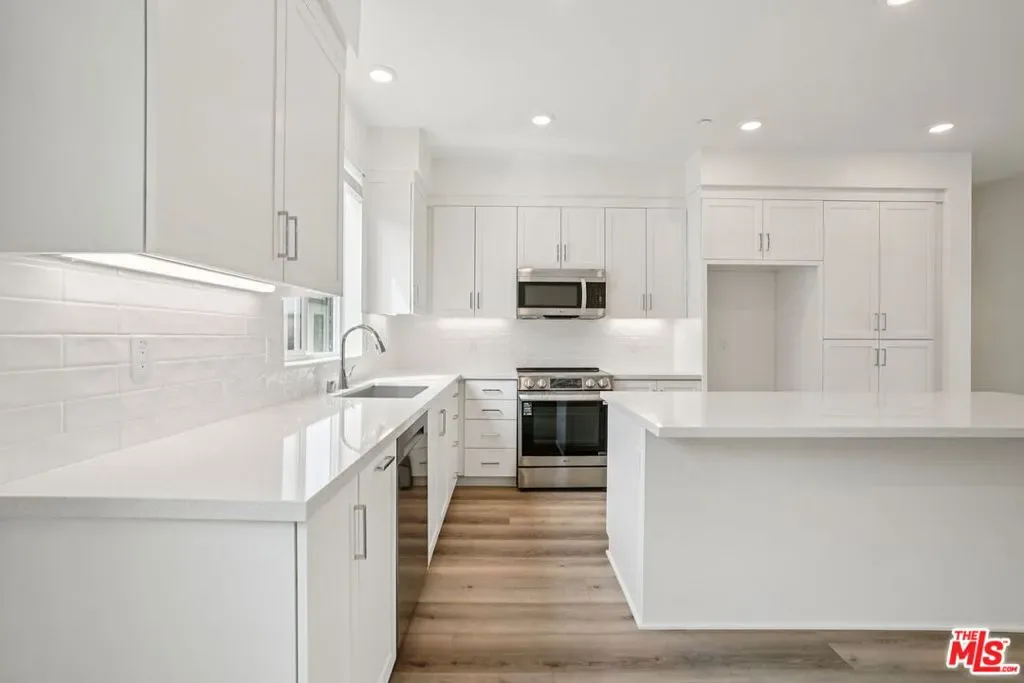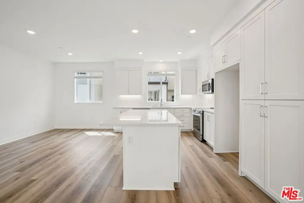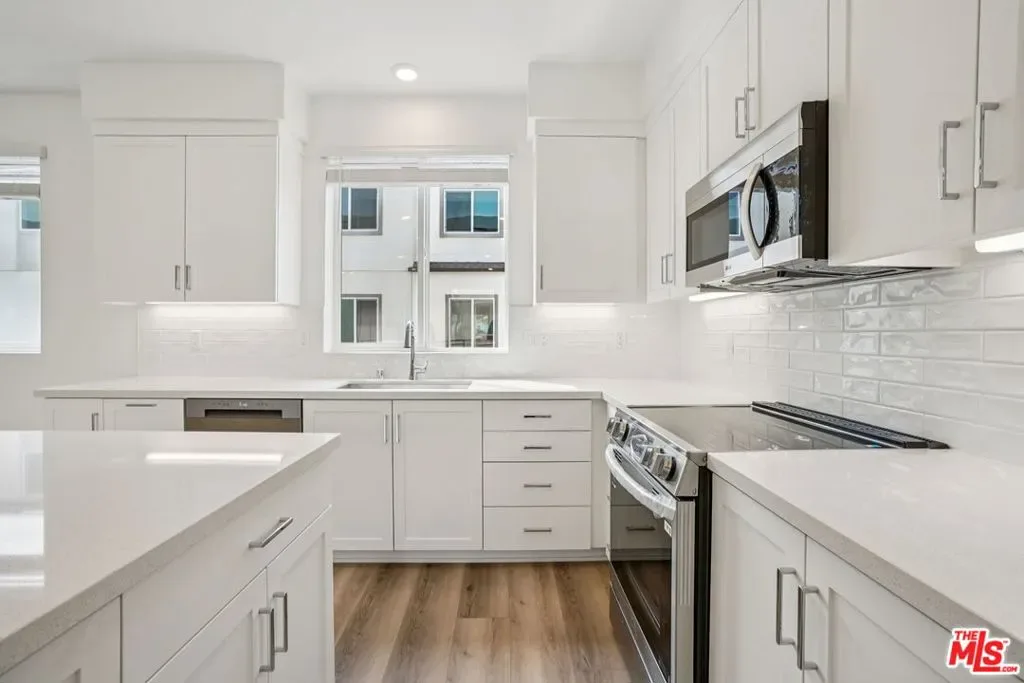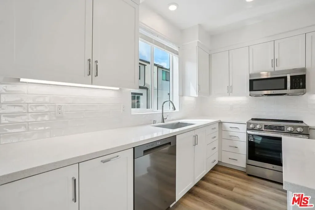 This stunning new-construction townhome at The Heights is the one you’ve been waiting for. Upgraded hard-surface flooring sets the tone for a sleek, low-maintenance aesthetic that flows seamlessly throughout the first floor, where a private junior primary suite offers convenience and flexibility for guests, extended family living, or a dedicated home office. The soaring ceilings of the great room create an airy, expansive feel, anchored by a striking multi-panel sliding door that opens to a generous deck, effortlessly blending indoor and outdoor living. The chef-inspired kitchen is a true centerpiece, showcasing classic white shaker cabinetry, undercabinet lighting, rich quartz countertops, a designer backsplash, and an oversized island with abundant storage. Built with energy efficiency in mind, the home features high-performance windows for superior climate control, a smart video doorbell, and whole-house faux-wood white window treatments that lend a polished, cohesive look from room to room. You’ll enjoy resort-style amenities including a sparkling pool, spa, recreation center, fitness center, and peaceful passive trails. Set within one of Los Angeles’ most sought-after neighborhoods, this community is celebrated for its architectural distinction, natural surroundings, and unbeatable proximity to coastal attractions, parks, and local dining. Virtual tour and photography are of the model home and used for representational purposes only.