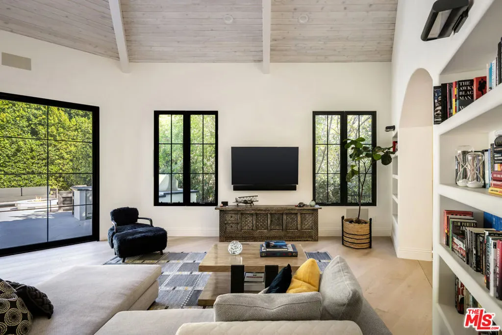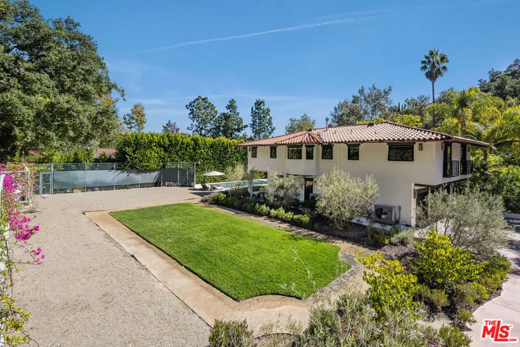 Welcome to 7651 Willow Glen, a rare half-acre estate set within the prestigious celebrity enclave of Willow Glen Estates. Fully reimagined in 2023, this former championship Tennis Court property offers exceptional versatility, with RTI-approved plans for a two-story ADU or the opportunity to restore the private tennis court on the expansive flat grass pad. Designed by Newfield Design Inc., the home showcases curated interiors featuring handcrafted tile, Taj Mahal quartzite surfaces, Cle Tile, and top-of-the-line WOLF & SUB ZERO appliances throughout. The main level unfolds with a formal living room anchored by a fireplace and a stunning great room that seamlessly blends family, dining, and chef-caliber kitchen spaces. Walls of sliding glass doors bathe the home in natural light and open to an inviting outdoor living area ideal for indoor-outdoor entertaining. Additional highlights on the main floor include a 7.1 surround sound projection home theater, a guest suite currently styled as a home office, and a sophisticated powder room. Upstairs, two generously sized guest bedrooms accompany a luxurious primary retreat complete with a private sitting area and fireplace, spa-inspired steam shower bath, and a custom oak walk-in closet. The resort-style grounds are equally impressive, featuring a large saltwater pool and spa, a Viking outdoor kitchen with firepit, and an expansive motor court accommodating parking for over 10 vehicles. A true extraordinary offering in one of the area’s most coveted neighborhoods.