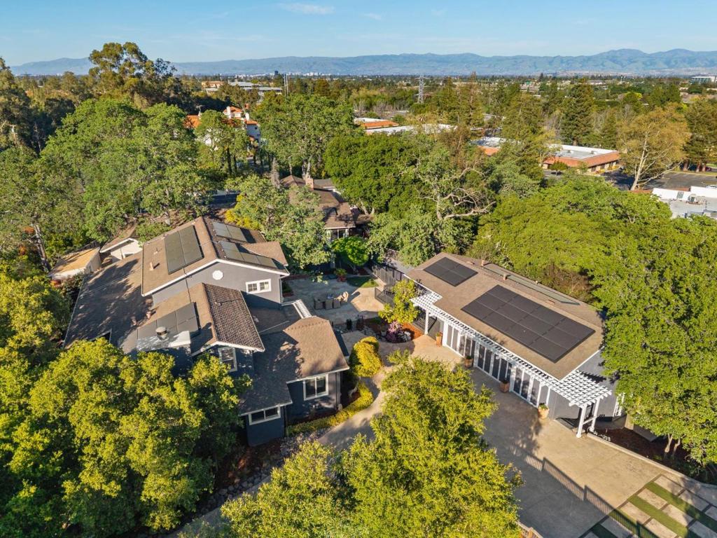 Hidden along a quiet stretch of Winchester Boulevard, this LG property is accessed via a long private drive surrounded by mature trees & landscaping, creating a peaceful, secluded setting. Motor court, 3-car garage & inviting outdoor areas give the property a private feel. In addition, the permitted detached cottage includes a living area, kitchenette, bedroom & updated bath. For the main house, a striking black entry door opens to wood floors, vaulted ceilings & expansive windows that fill the home with natural light. 2 living areas include a lounge with a built-in media center & a 2nd space with a gas-log fireplace and built-in shelving. The kitchen features a granite island with a Thermador cooktop, dual sinks, ample cabinetry, a walk-in pantry & high-end appliances including Thermador double ovens, a GE Monogram refrigerator & a Bosch dishwasher. Breakfast area overlooks the gardens, and dining room opens to the backyard for indoor-outdoor living. 2 main-level bedrooms share a full bath. Upstairs, the primary suite offers vaulted ceilings, a Juliet balcony with views of the LG Hills & a bath with soaking tub, glass shower, dual vanity, and walk-in closet. Outdoor spaces w/ gardens and paths. Solar w/ Tesla battery storage and dual HVAC complete this property near downtown LG.
