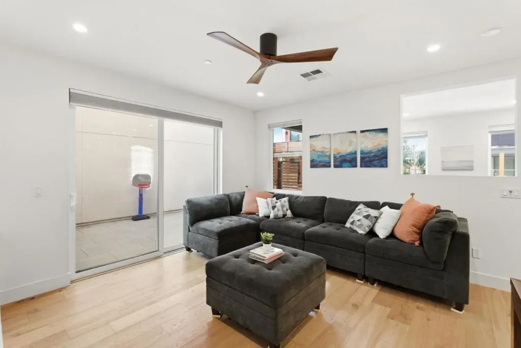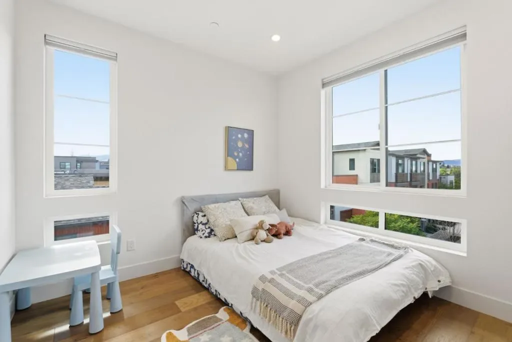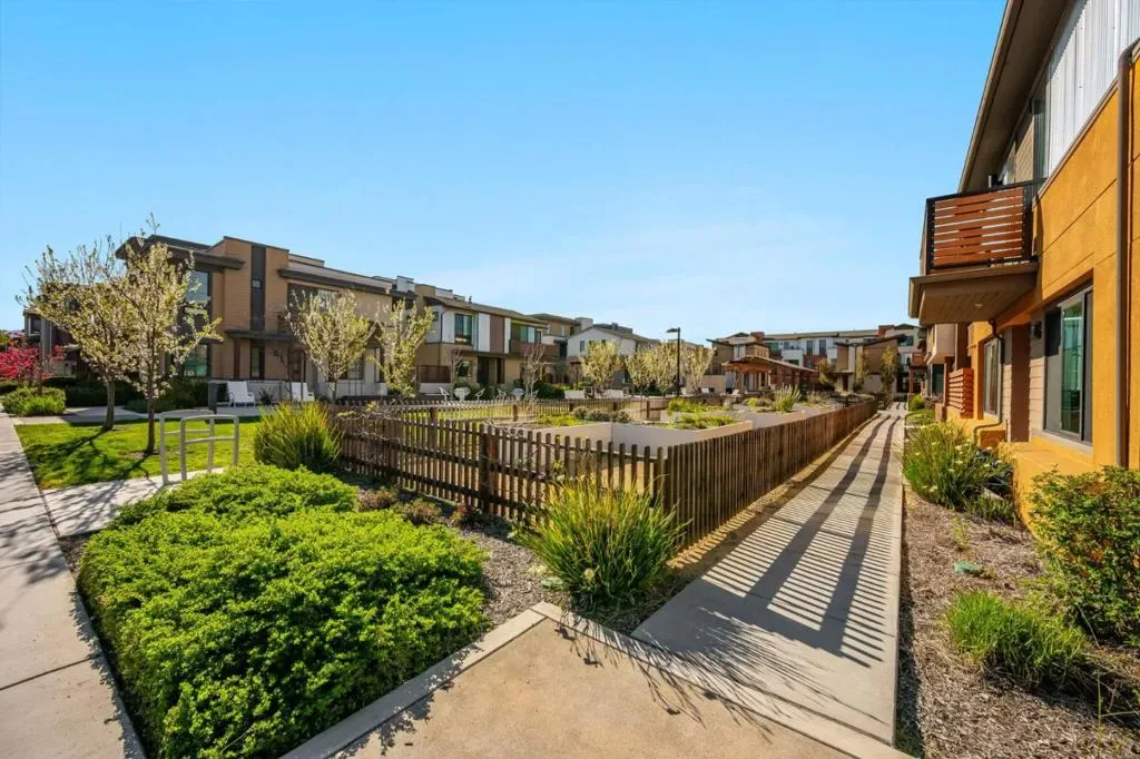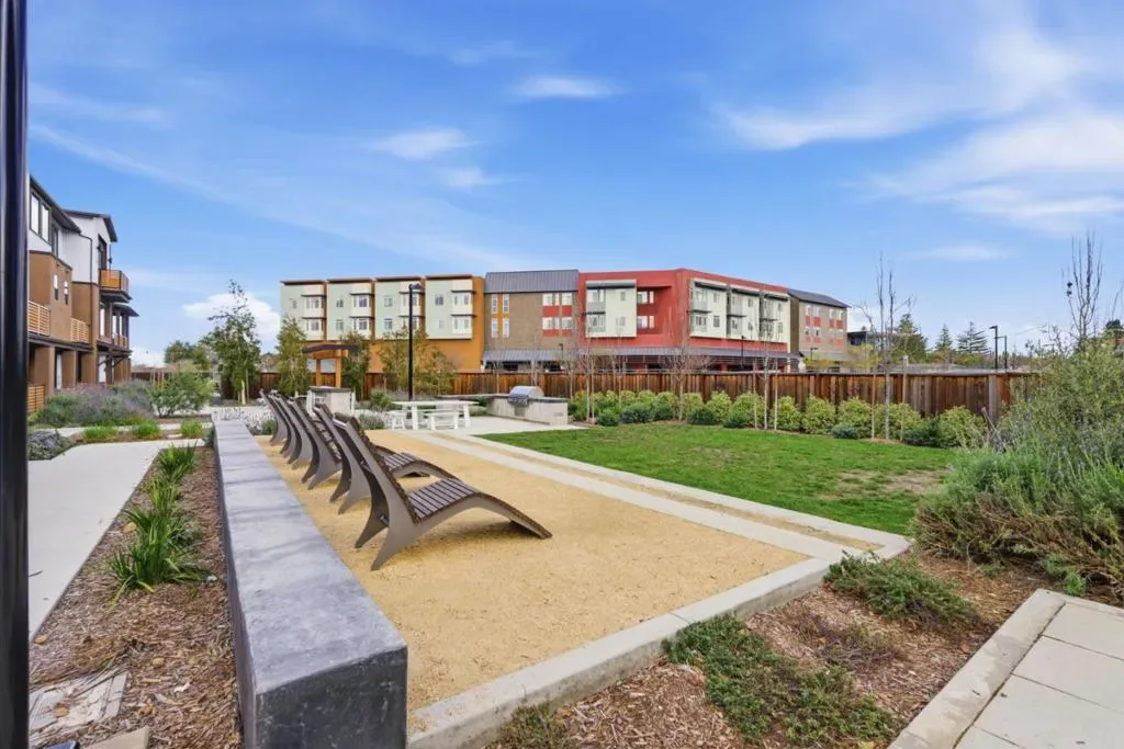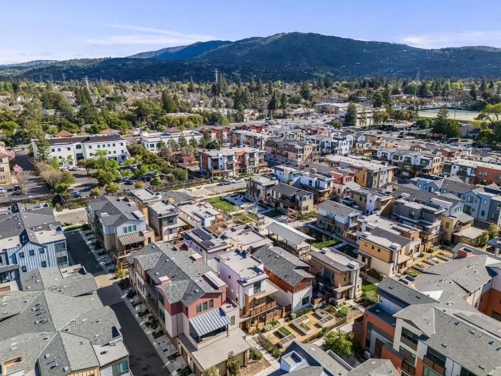 Feels Like a Detached SFH in Los Gatos, with mountain views! Rare 2022-built residence offering the privacy, comfort, and livability of a single family home at exceptional value. With no shared living walls except the garage, this home delivers a quiet, private lifestyle rarely found at this price point. A charming private yard enhances the detached home feel, perfect for relaxing, entertaining, and indoor/outdoor living. Inside, the home is beautifully appointed with over $120,000 in designer upgrades, including luxury hardwood flooring, a dramatic waterfall countertop, crisp white cabinetry, and designer lighting. The high ceilings and open concept main level connect the living, dining, and kitchen areas, while expansive windows fill the space with natural light. An additional den offers flexibility for a home office, media room, gym, or guest retreat. Multi-zone central AC provides efficient comfort throughout. Located in a well maintained community with garden areas, BBQ space, basketball court, and gathering areas, this home also enjoys a prime Los Gatos location within the highly regarded Los Gatos-Saratoga Joint Union High School District.
