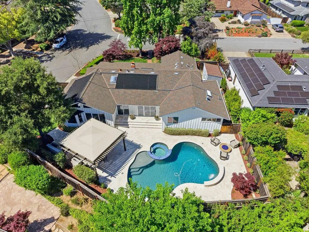 Beautifully updated single-story ranch in one of Los Gatos most sought-after neighborhoods with access to highly acclaimed, top-rated schools. Set on a sprawling 10,000+ sq ft corner lot, this 2,571 sq ft Blossom Manor home offers timeless style, an exceptional floor plan, and nearly $100,000 in recent upgrades. Light-filled interiors feature 5 skylights throughout, refinished hardwood floors, custom built-ins, and fireplaces in both the living and family rooms. The refreshed kitchen includes a large island, Porcelanosa tile backsplash, updated lighting, and refinished cabinetry, opening to the vaulted family room. Spacious primary suite overlooks the backyard and pool, with a spa-like bath, dual vanities, oversized shower, and walk-in closet. Two additional bedrooms plus a separate office offer flexibility. Resort-style backyard with fresh landscaping, pool, spa, outdoor kitchen, pergola, and fireplace. Smart home features, updated fixtures, new water heater, and finished garage. Prime Los Gatos location just minutes to downtown, top dining, shopping, and easy access to Hwy 17 & 85.