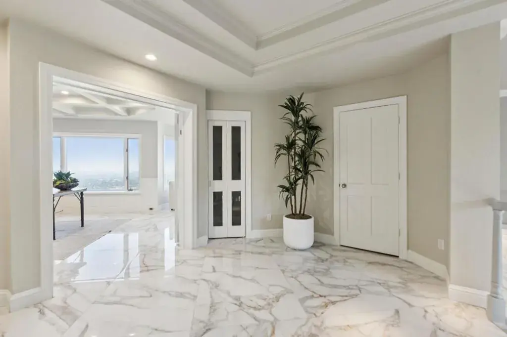 Set along one of Los Gatos most sought after ridge lines, this extraordinary estate captures sweeping yet intimate panoramas. Nearly every window frames views across downtown Los Gatos, Vasona Lake, the surrounding mountain ridges, and even the distant skylines of San Francisco, Oakland, and San Jose. Wrapped in privacy and framed by elegant landscaping, this breathtaking residence combines grandeur, comfort, and a deep connection to its natural setting. A tall wrought-iron entry door accented by mosaic glass opens to a grand foyer with volume ceilings and an elegant chandelier. Dual staircases sweep upward, creating balance and presence, while large windows allow natural light to pour in. Radiant heated marble and tile floors flow throughout the property for year-round comfort. The home unfolds with thoughtful flow and scale. With an expansive primary suite, four guest bedrooms, executive office, attached ADU with full kitchen and bath, detached pool house and two finished three-car garages, this estate is a home of scale, refinement, and enduring presence. With panoramic views dusk to dawn, an elegant design and resort-style amenities, it offers a true Los Gatos estate experience private, expansive, memorable, and a wonderful place to call home.