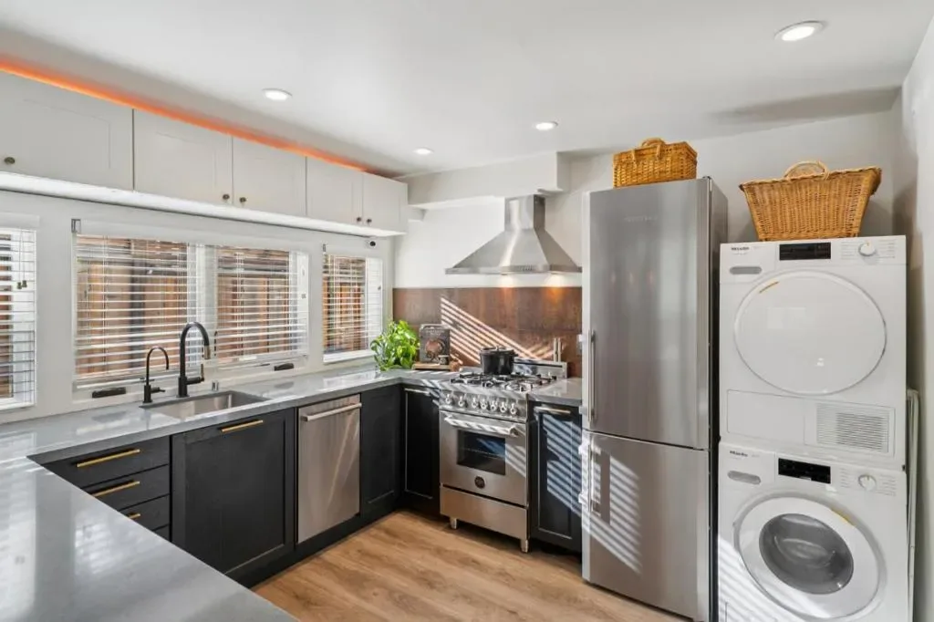 Discover elevated downtown living at 174 Villa Avenue in Los Gatos. This thoughtfully updated property delivers exceptional design and sustainable build for energy efficiency. A stroll-to-town lifestyle, exploring shops, dining, parks, and highly regarded schools. Recently remodeled house features a main residence w/ 2 bedrooms and 2 baths and an attached ADU offers 1 bedroom and 1.5 baths. Both boast high ceilings and skylit rooms, full gourmet kitchens w/ high-end appliances and walk-in pantry, hardwood flooring, designer Porcelanosa tiles and RH lighting throughout enhance the homes inviting, urban aesthetic ideal for both everyday living and entertaining. French doors lead onto serene patios surrounded by greenery perfect to enjoy your morning coffee or to entertain in an oasis-like setting. The upstairs primary suite offers a private spacious bedroom and light flooded lounging area, his & her walk-in closet and spectacular views of green hills. The attached ADU w/ its theater-grade soundproofing walls provides a private retreat for guests and family, or income potential, while the converted garage adds bonus living space perfect for a home office, studio or living space. Plush landscaping and fruit trees surround the property, creating an attractive low-maintenance setting.