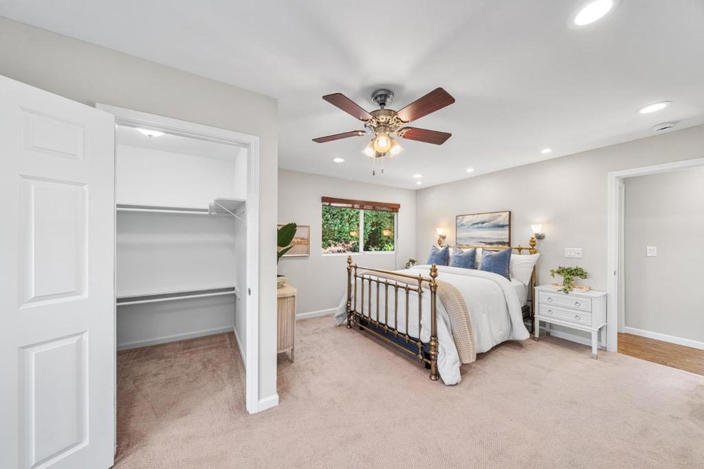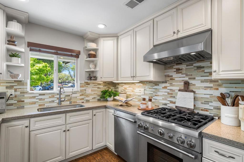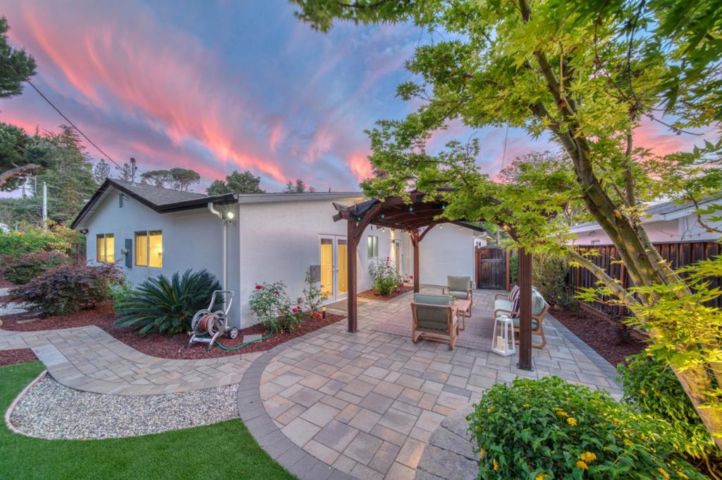 This beautifully upgraded single-story, three-bedroom, two-bathroom home offers the perfect blend of comfort, style, and convenience in Los Gatos. Enjoy modern living in the bright and inviting kitchen, dining, and family room designed to be the heart of the home for everyday living and easy entertaining. The well-appointed kitchen features stainless steel appliances, custom cabinetry, a breakfast bar that’s open to the family room has a beautiful gas fireplace and a skylight. The spacious primary suite includes French door access to the backyard, a private en-suite bathroom, a walk-in closet, and a wall closet with built-in storage. Additional highlights include two generously sized secondary bedrooms, an updated hall bathroom, an indoor laundry area with storage, and a finished garage with 220V wiring. The home also features a whole-house water purification and softener system, tankless water heater, fresh interior paint, air conditioning and much more. The oasis-like backyard showcases mature landscaping with multiple fruit trees, colorful plantings, artificial lawn, a gazebo over a paver patio, a pavered walkway and a sun-filled vegetable garden area. It is conveniently located near commute routes, parks, retail, restaurants and top-rated Los Gatos schools.