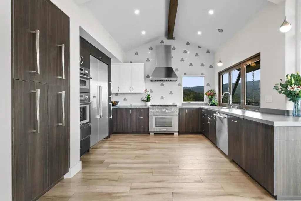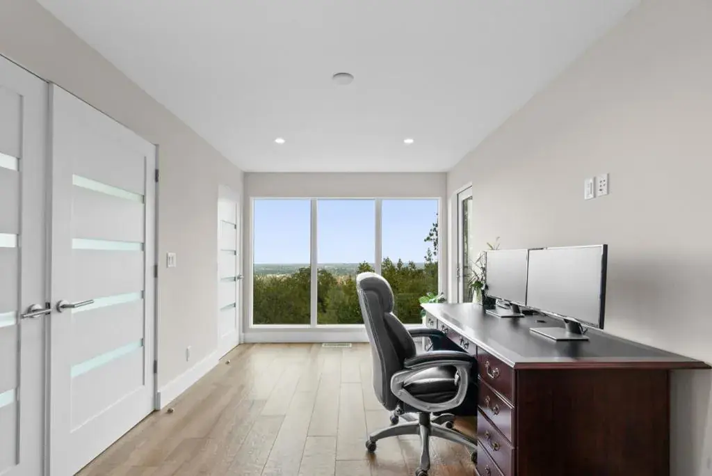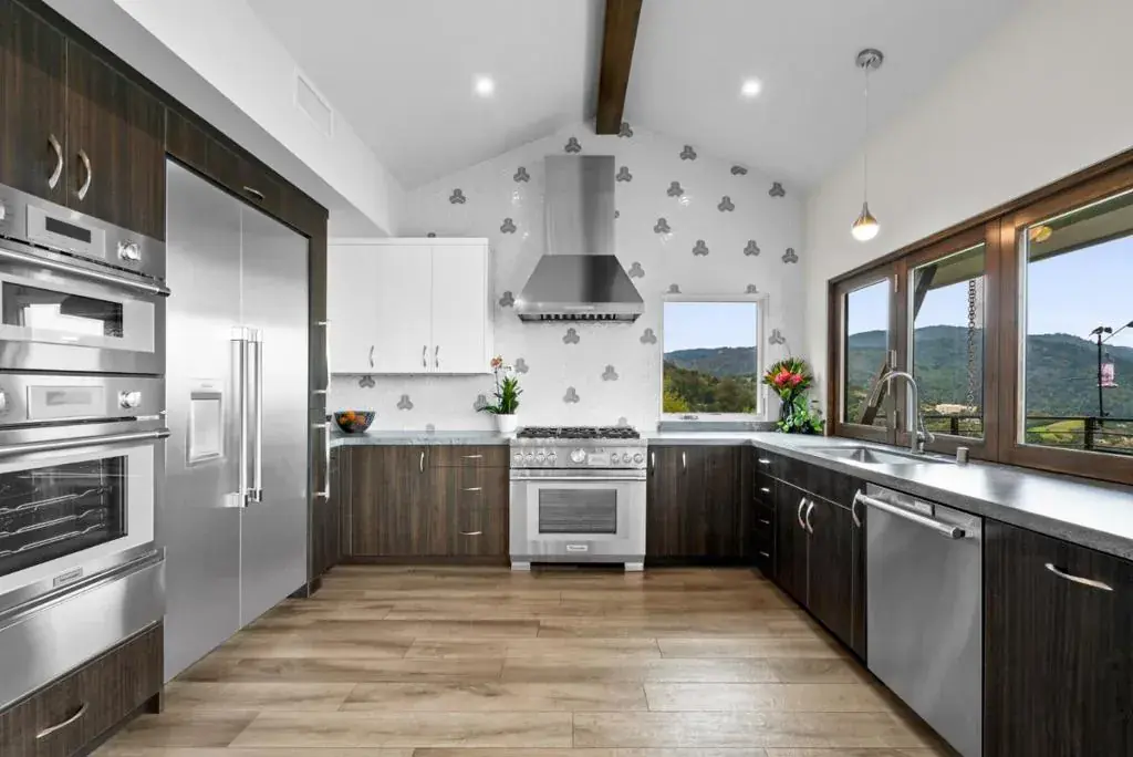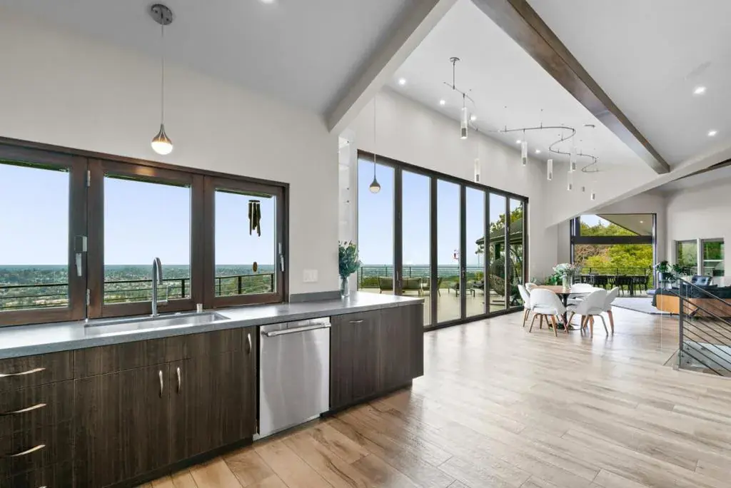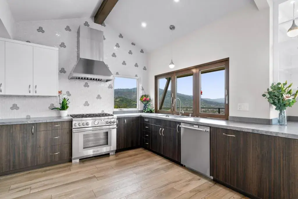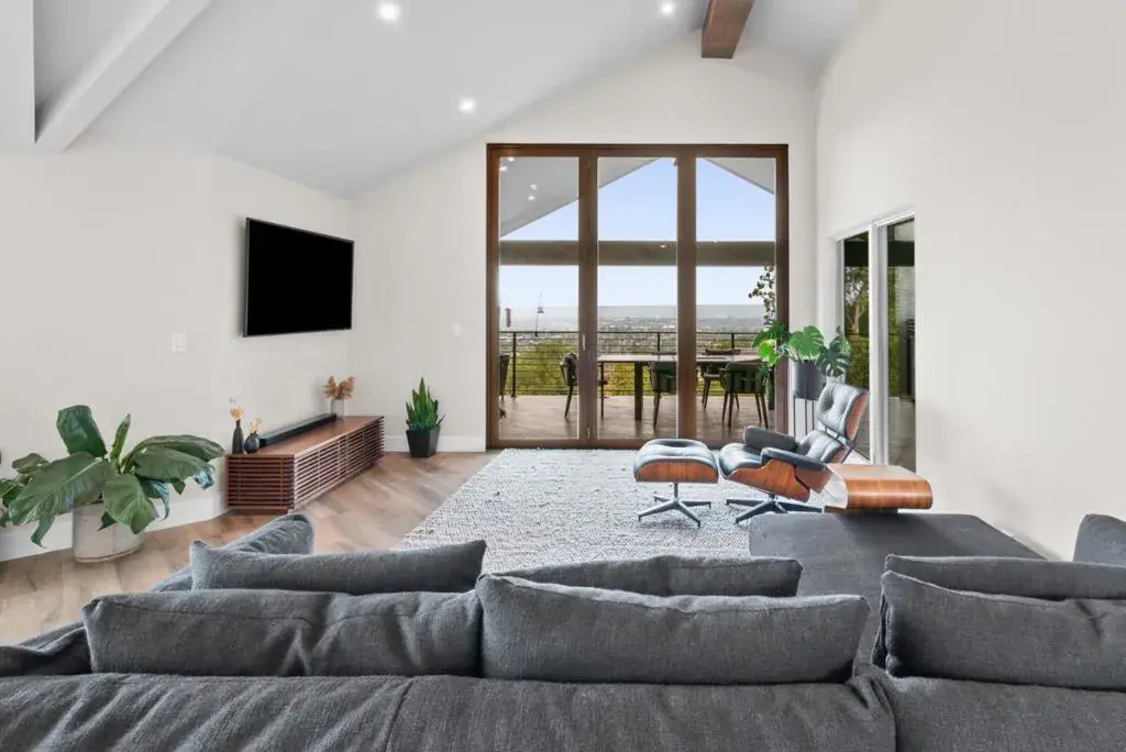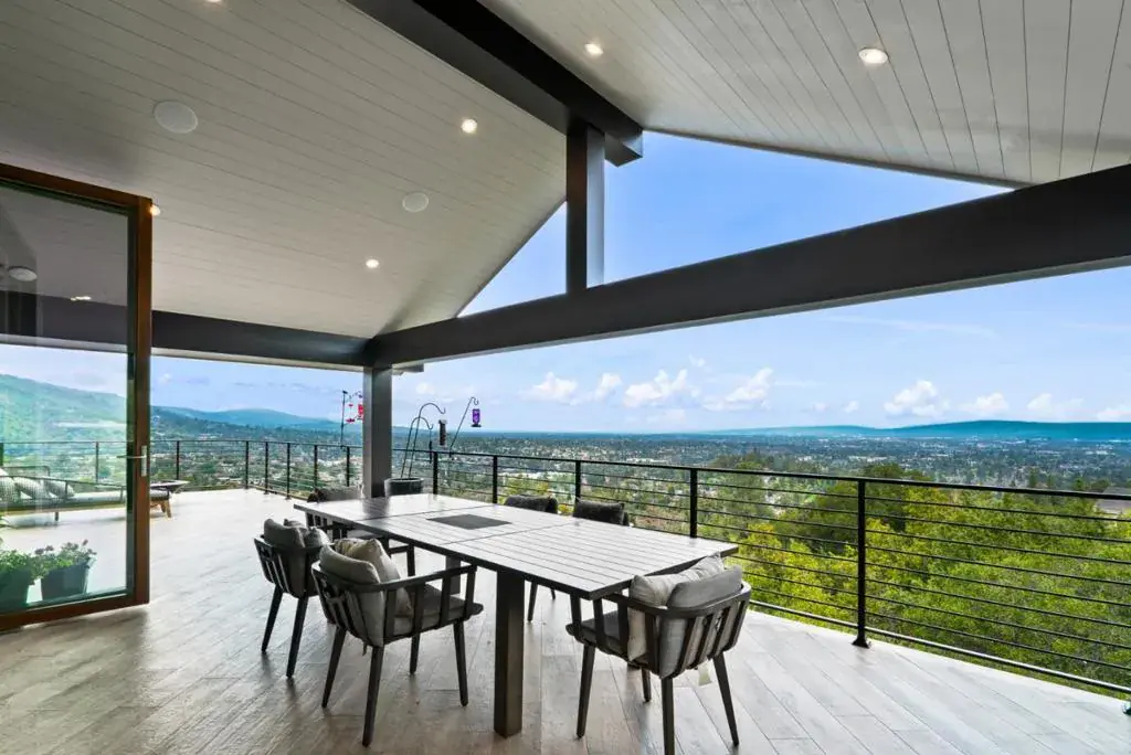 VIEWS OF THE VALLEY! Situated on a private road, this fully fenced and gated modern oasis offers spectacular panoramas of the mountains, Silicon Valley, and Bay Area skylines. Exceptionally quiet and peaceful, it provides a true sense of retreat while remaining close to everything. Designed for everyday luxury and entertaining, the home features a saline heated pool with waterfall, jacuzzi, sauna, and a fully equipped outdoor kitchen…your own private resort. Accordion doors create seamless indoor/outdoor flow, connecting the light-filled main level, chefs kitchen with Thermador appliances, and spacious wraparound deck with TV lounge. Four ensuite bedrooms include a view-filled primary suite with adjoining office (or 5th bedroom) and a separate-entrance guest suite. A lower-level media/game room adds versatile space. Wellness features include radiant heated floors, MERV 16 air filtration, and whole-house water purification. Smart upgrades include a Control4 automation system with smart lighting, indoor/outdoor speakers, perimeter cameras, gate control, and a security alarm. Fresh interior and exterior paint and a low-maintenance yard complete this turnkey sanctuary minutes from top Los Gatos schools, dining, and HWY 17/880.