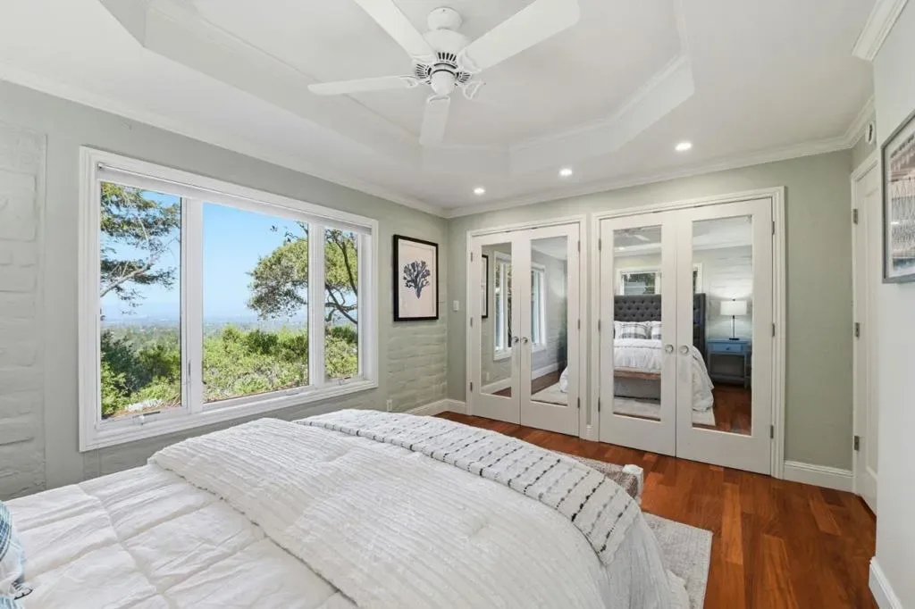 Nestled in a highly desirable Los Gatos neighborhood, this single-level home rests on a rare view lot offering breathtaking vistas spanning Silicon Valley. 4 beds, 2 baths, the home boasts a spacious, bright floor plan designed for everyday living & effortless entertaining. Inviting entry showcases soaring vaulted ceilings that lead into multiple living areas, creating a warm & welcoming atmosphere. Designer kitchen features high-end appliances, stylish finishes, and opens seamlessly to the main living areas. Comfort & convenience are thoughtfully integrated throughout the home: radiant floor heating in select rooms, built-in closets in every bedroom, expansive storage in laundry, AC, heating, gas fireplace. Step outside to expansive patio areas that capture stunning views from every angle, an entertainers dream, perfect setting to relax, dine, and enjoy the peaceful hillside surroundings. The unique indoor-outdoor flow makes it easy to take full advantage of the home’s serene setting. Located mins from downtown Los Gatos, enjoy easy access to shops, restaurants, walking trails, & beautiful parks. The property is in the boundaries of highly top-rated schools. Offering the perfect blend of privacy, luxury, and convenience, this remarkable home delivers the very best of LG living.