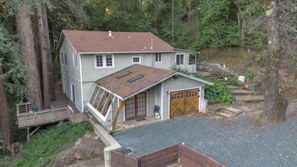 Ideally located in the Los Gatos mountains just minutes from downtown, this home offers room to relax, work, and play, with easy access to parks and scenic trails. The kitchen includes a dedicated breakfast room and opens to a spacious living room anchored by a cozy wood stove and framed by views of the surrounding outdoor space. The upper level features two inviting bedrooms and a full bath. The lower level provides added flexibility with a family room, game room, full bath, two more bedrooms, laundry, and abundant storage. Outside, a hardscaped patio offers the perfect setting for gatherings or quiet evenings. Served by award-winning Los Gatos schools.