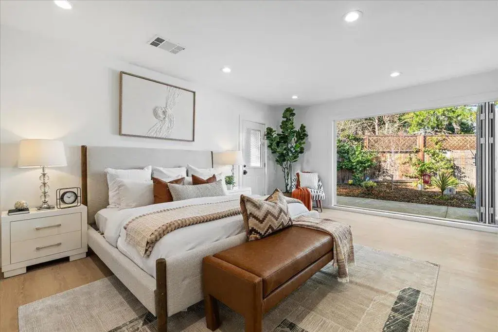 Experience modern elegance in this extensively remodeled home w/ an open floor plan, blending indoor & outdoor living just a few homes from Vasona Park, ideal for weekend walks, bike rides, & time w/ kids. Set in a highly desirable neighborhood w/ top-rated Los Gatos schools, this home offers backyard views with no need to venture into the hills. Recent upgrades include a spacious kitchen island w/ a built-in microwave, upgraded HVAC system, & enhanced insulation. The 12-ft accordion doors in the living room open to a landscaped backyard, creating a true open-air living experience. The finished garage adds flexibility & features its own accordion-style door opening to the backyard w/ separate exterior access. Currently staged as a fourth bedroom, the garage includes drywall, insulation, electrical outlets, HVAC, upgraded laundry hookups, & 20-ft built-in wardrobe cabinets. Outdoor enhancements include extensive hardscaping in the front, back, & oversized side yard, artificial turf, fruit trees, a sprinkler system, privacy plantings, & a wooden fence. Additional features include a tankless water heater, water purifier, exterior electrical connections, security cameras, & outdoor lighting. This is a rare opportunity to own a thoughtfully upgraded home in a sought-after location.