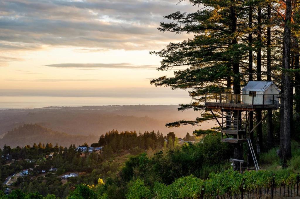 High above Silicon Valley, where the Santa Cruz Mountains meet the sky, lies Lago Lomita, a sanctuary of beauty, heritage, and possibility. Across forty-four acres of terraced vineyards and ridgelines, the estate is less a property than a world unto itself, suspended above the fog with cinematic views of Monterey Bay. The Adobe residence, by architect Guy Deneus, exudes quiet gravitas with bespoke woodwork, antique doors, and a chef’s kitchen anchored by Sub-Zero and Thermador. Nearly every space frames the outdoors, honoring sea, sky, and vineyard alike. Sustainably farmed vines, including celebrated Nebbiolo, flourish in this rare terroir, producing vintages recognized by Wine Enthusiast. Beyond the vines, Lago Lomita is a destination: its 40-foot treehouse, featured in National Geographic, and its Lotus Belle Yurt, welcoming travelers, couples, and artists worldwide. For the discerning buyer, Lago Lomita is both a lifestyle and legacy vineyard estate, boutique brand, and stage for quiet mornings to grand celebrations. Secluded yet connected to Los Gatos, Santa Cruz, Silicon Valley, and SJC Airport, it feels a world apart while never out of reach. Lago Lomita offers more than land and vines; it offers a vantage point and a way of life few will ever know, and fewer will claim.